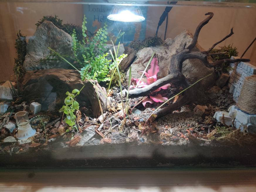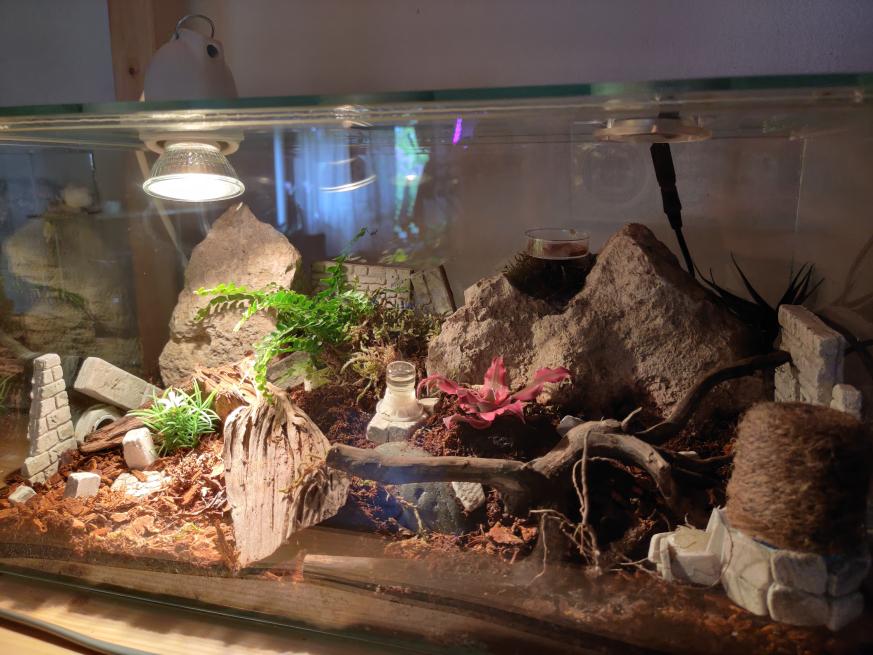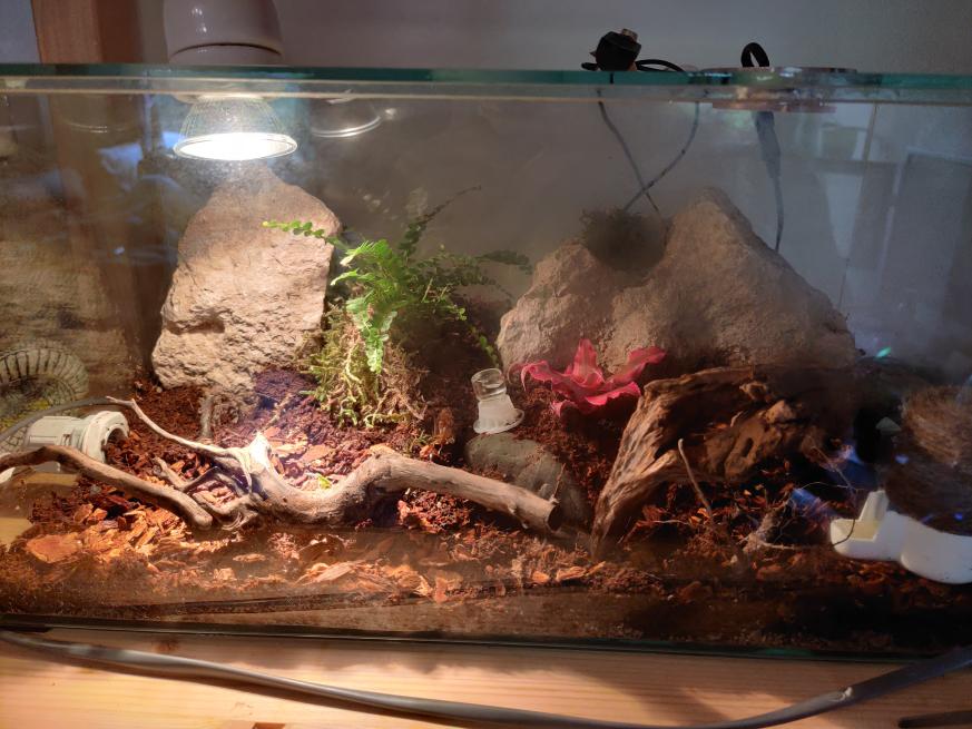 Diese ist vom Antstore da ich das Aussehen schon ziemlich edel finde. Zusätzlich habe ich eine Lampe und einen Ventilator gekauft da in dem Herkunftsland ja schon eine hohe Luftfeuchtigkeit herrscht. In der Arena habe ich zwei Pflanzen platziert, dabei habe ich darauf geachtet dass diese im Schatten stehen können.