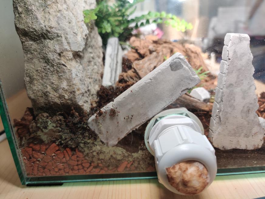 es ist ein aufrecht stehendes Ytong Nest da die Damen gute Kletterer sind. Die Temperaturen darin liegen bei ca. 26 °C. Es gibt zwei Anschlüsse an diesem Nest! Für eine eventuelle Erweiterung des Nestes.