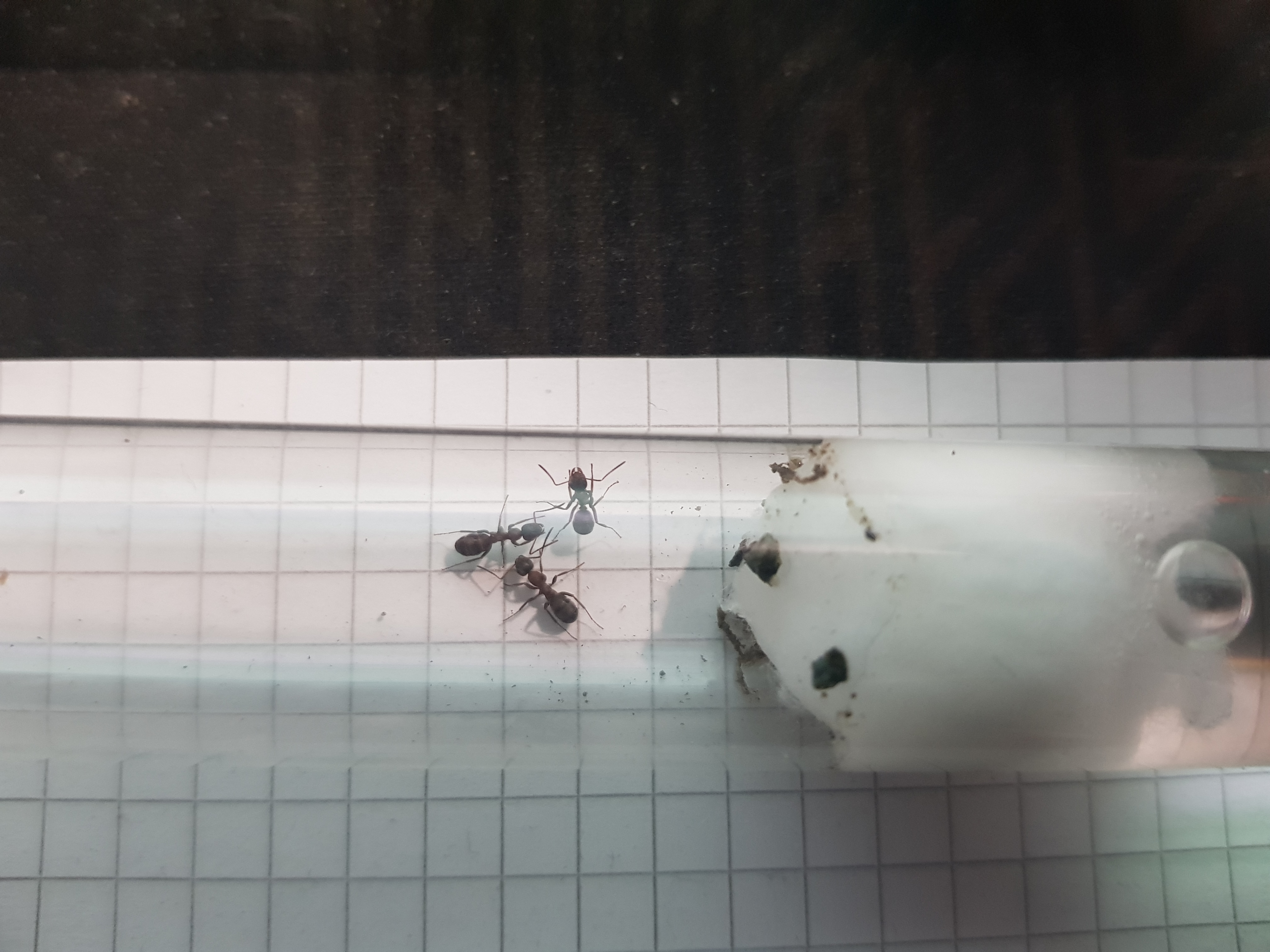 Falls es tatsächlich eine Monogyne Art sein sollte, werde ich diese natürlich wieder von einander trennen. Wobei sie sich bist jetzt wohl nicht angegriffen und sogar gefüttert haben, allerdings weiß ich auch, dass wenn sie sich töten sollten dies wahrscheinlich erst nachdem die ersten Arbeiter da sind passieren wird.