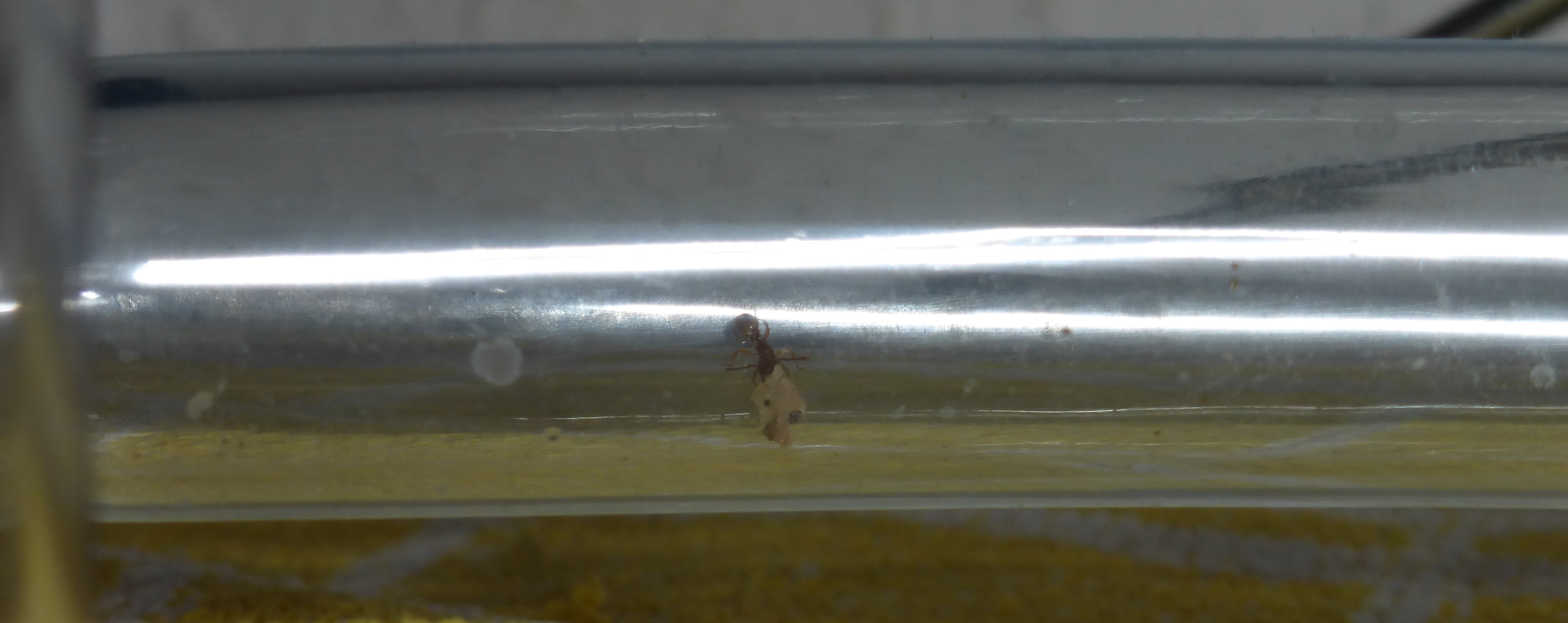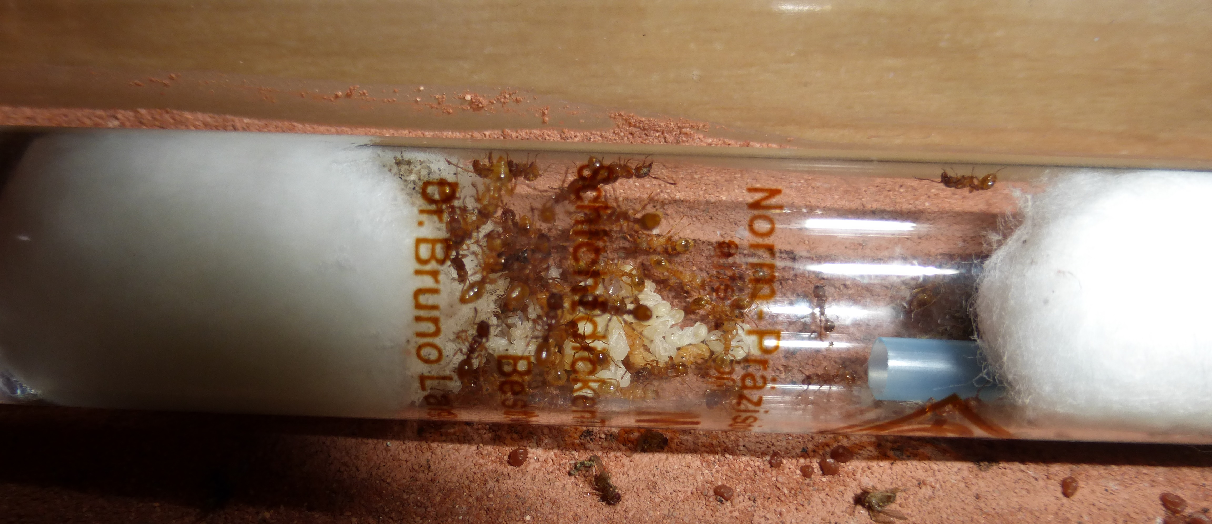 Und hier sind die Ameisen, in ihrem Reagenzglas.