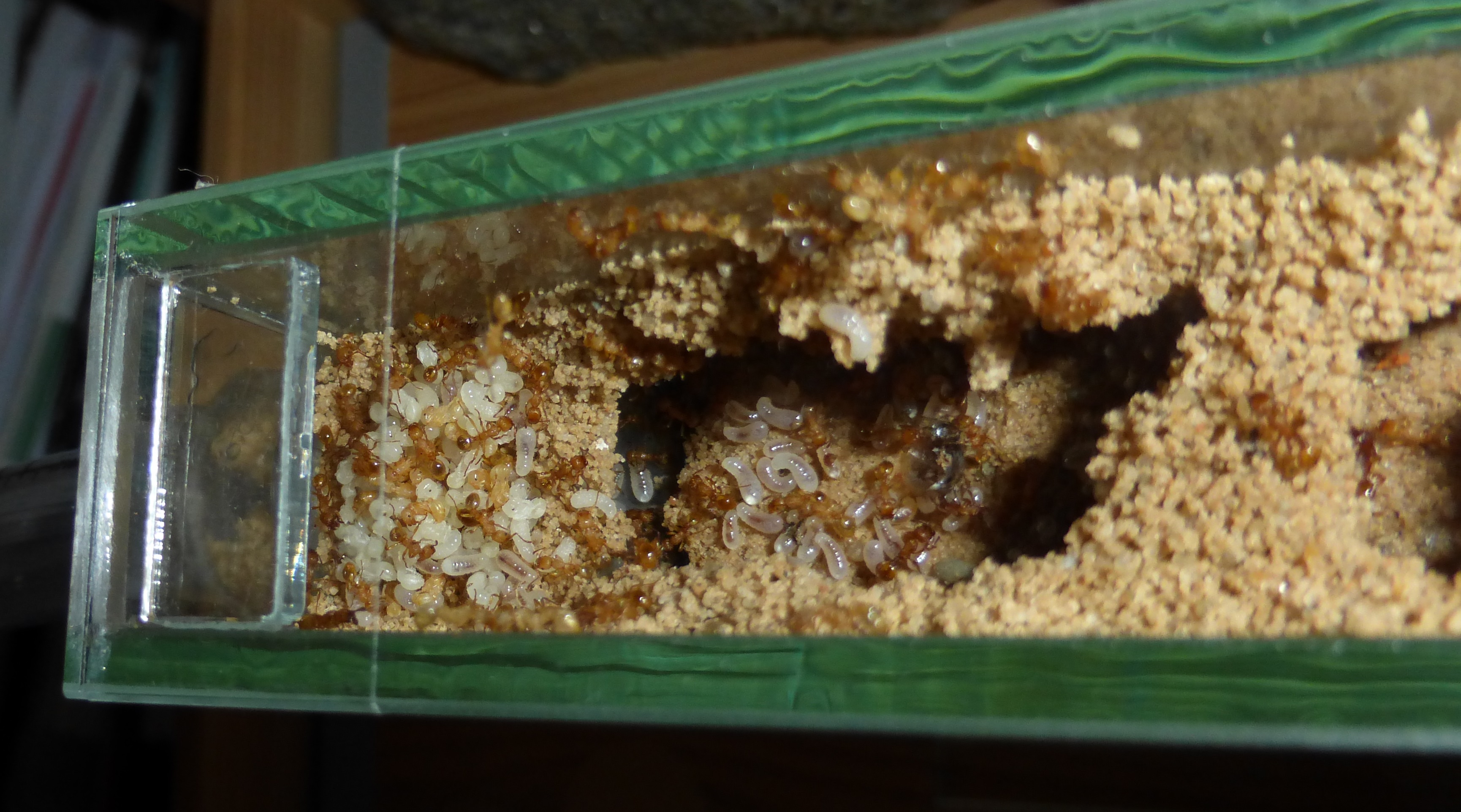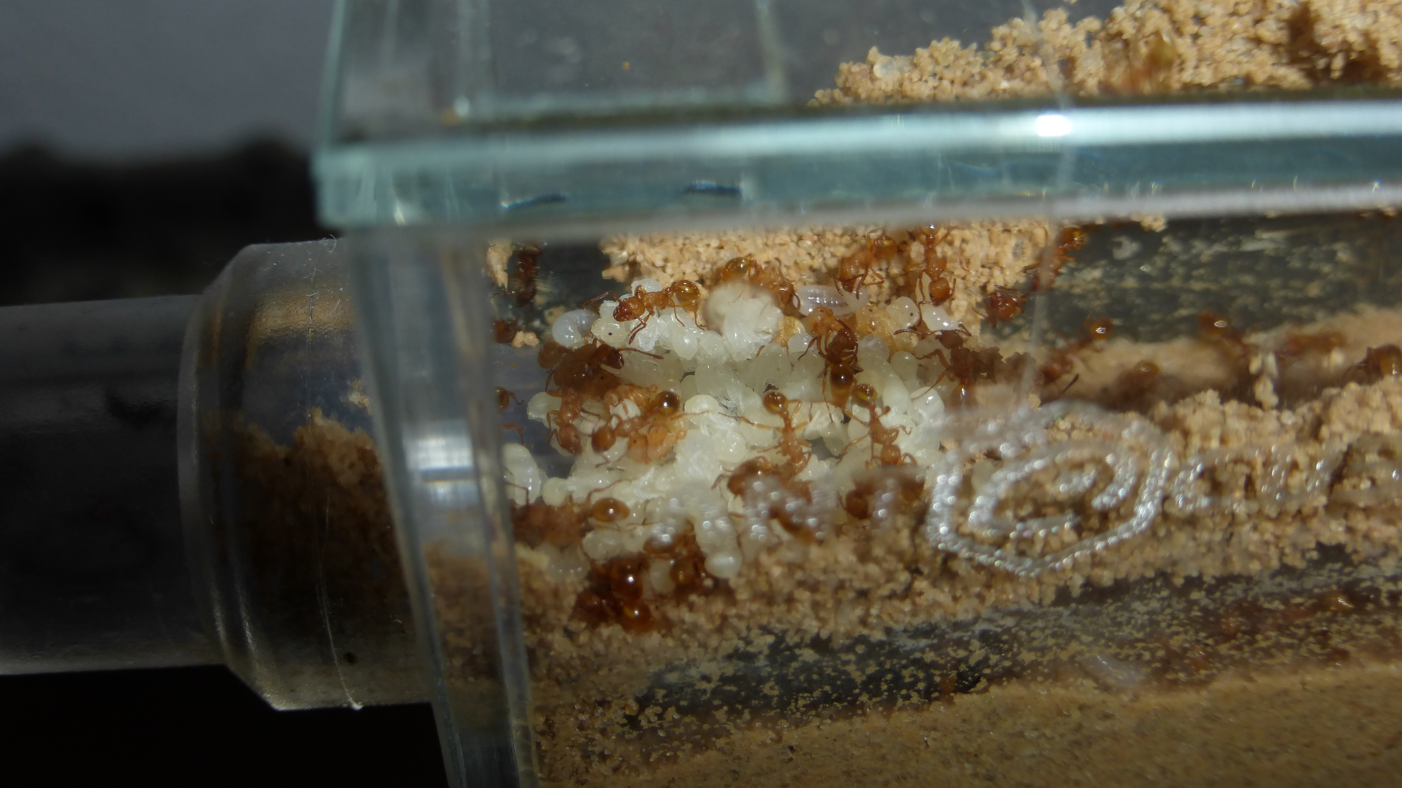 Die Ameisen wurden ein wenig schneller und aktiver im Becken, aber ich denke es macht keinen wirklich groĂźen Unterschied.
