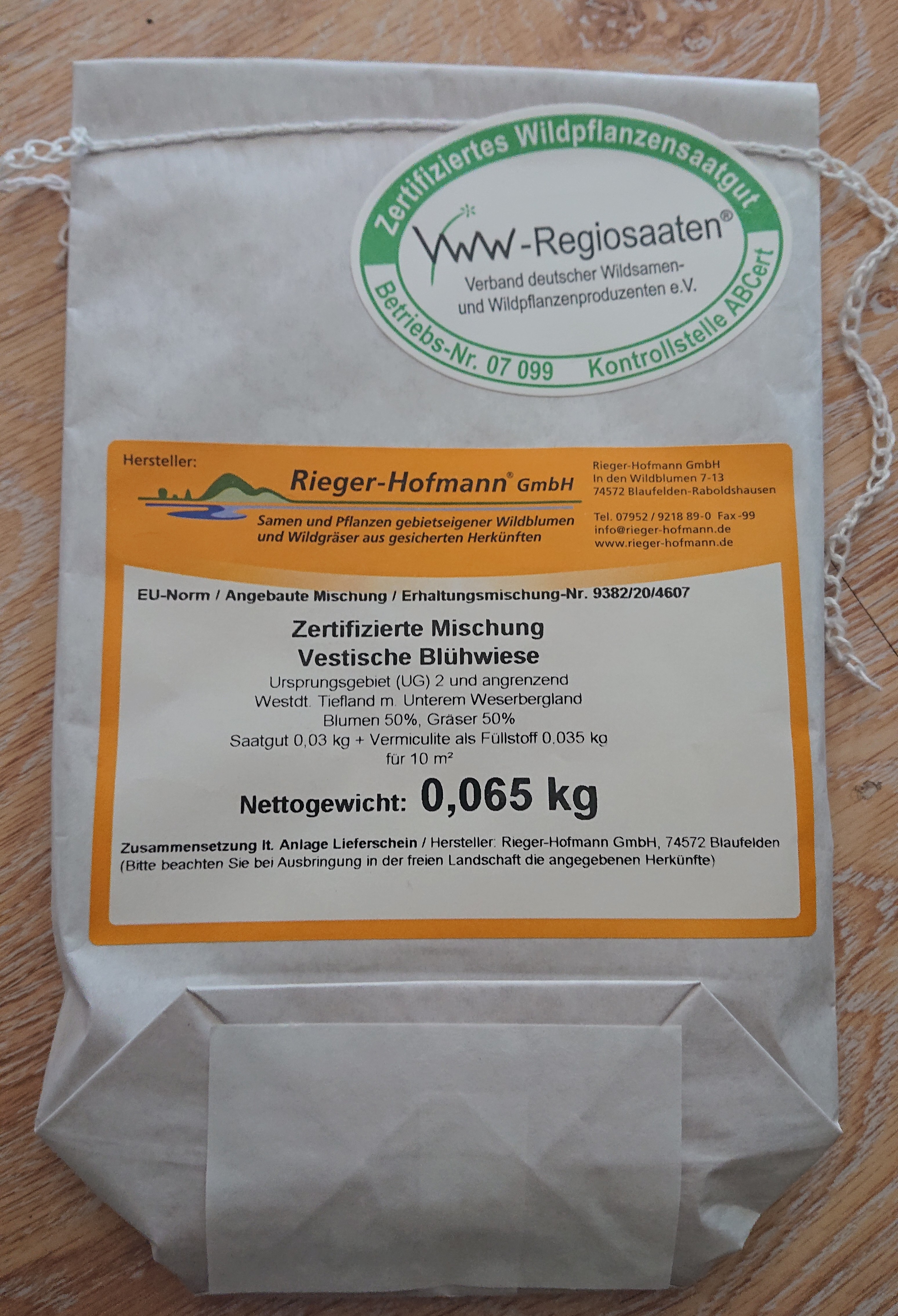 Für das Anlegen größerer Blühflächen mit möglichst hohem ökologischen Wert bieten sich speziell konzipierte Samenmischungen an, die möglichst nur einheimische Arten beinhalten. Zu nennen wären hier beispielsweise die Wildblumenmischungen von Syringa, die in Zusammenarbeit mit Paul Westrich zusammengestellt wurden.