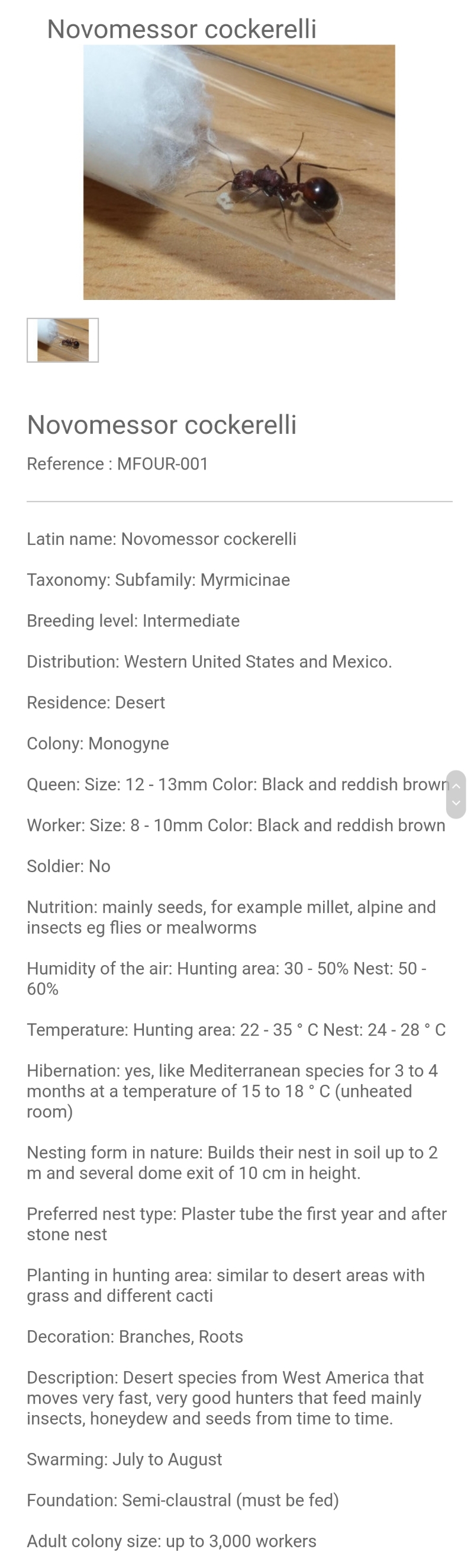 Das habe ich für die im AntWiki/auf AntMaps genannten Provinzen Mexikos sowie der Staaten der USA getan und mir auch Infos zum Biotoptyp "Creosote Buschland" durchgelesen. Dabei komme ich auf geringe bis mittlere LF sowie einen drei- bis viermonatigen Winter mit Tageshöchsttemperaturen von 24 Grad. Scheinbar ist die Dauer und strenge des Winters relativ ähnlich. Unter 0 sinkt die Tiefsttemperatur nie. Auf Fourmishome fand ich folgende Angaben für N. cockerelli: Dementsprechend werde ich mit ihnen wohl wie mit meinen Messor barbarus verfahren.Serafine hat geschrieben: ↑12. September 2020, 15:13Die vereinigten Staaten sind ein sehr großes Land mit diversen Klimazonen - oft kann sich das Verhalten derselben Art je nach Fundort drastisch unterscheiden, da wäre es wichtig zu wissen aus welchem Gebiet die Ameise exakt kommt, dann kann man sich im Internet ein Klimadiagramm der genauen Gegend suchen und daraus schlussfolgern, ob eine Winterpause sinnvoll wäre.