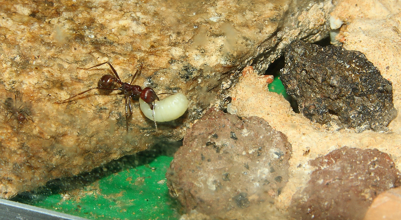 Mit Insekten verhallt es sich ähnlich, wobei anzumerken ist, der Bedarf an Insekten, ist deutlich geringer als bei Messor barbarus.
