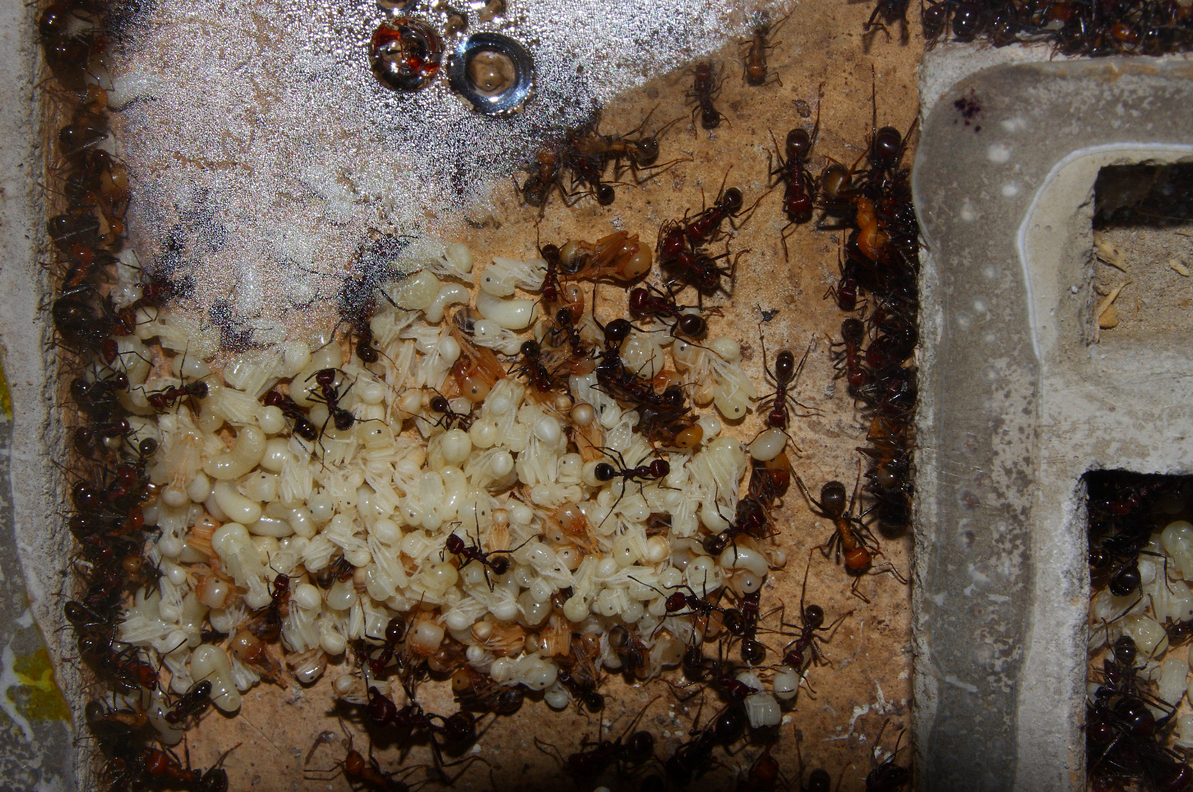 Nachdem dieses Messor cephalotes Volk, so wie ich meine, eine gute Entwicklung durchgemacht hat, stagniert die Brutentwicklung derzeit.