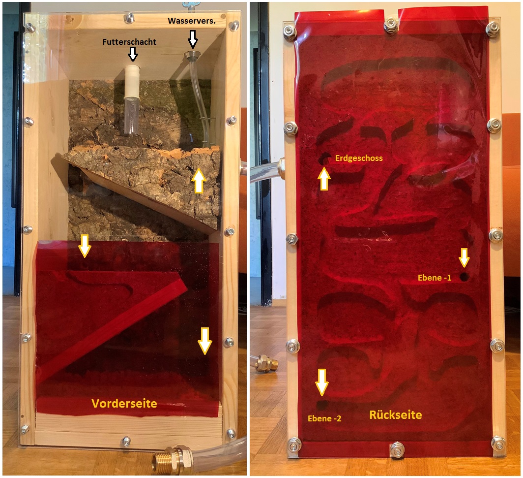 Toll, das mein HB einen Zweck erfüllt! Da hast du dir ja richtig Mühe gegeben, mit dem Holznest. Für den Anfag sieht das schon sehr professionell ausMartin90 ↑20. September 2020, 23:00Voller Tatendrang habe ich mir letzte Woche alles Notwendige für ein Formicarium angeschafft, und am Wochenende eines gebaut. Dabei hat mich dein Haltungsbericht inspiriert (mit welchem ich leider immer noch nicht ganz durch bin). Der Plan dafür hat sich erst während dem Arbeiten entwickelt. Dabei habe ich versucht, es möglichst attraktiv für die "kleinen" und auch pflegefreundlich für mich zu gestalten. Natürlich nix geklebt - habe alles verpresst und/oder lösbar verschraubt. Ein kleines Lüftungssystem wäre auch nachträglich machbar, falls notwendig.