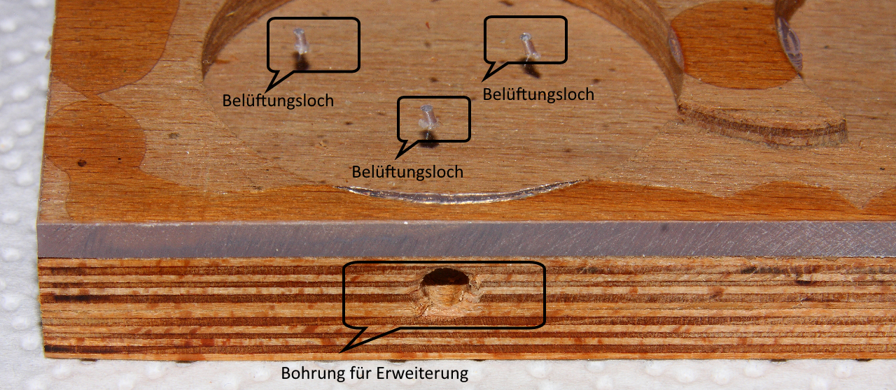 Wie zu sehen, zusätzlich eine seitliche Bohrung, diese verschlossen mit einer Metallgaze ergäbe eine zusätzlich Belüftungsmöglichkeit.
