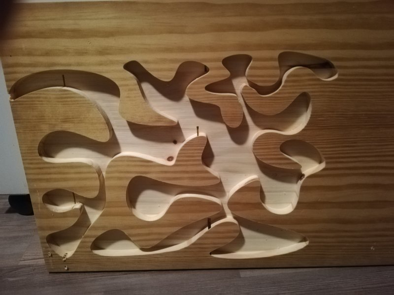 Mit einem „Lochkreissägebohrer“ werden die Kammern eingearbeitet, Verbindungsgänge mit der Laubsäge.