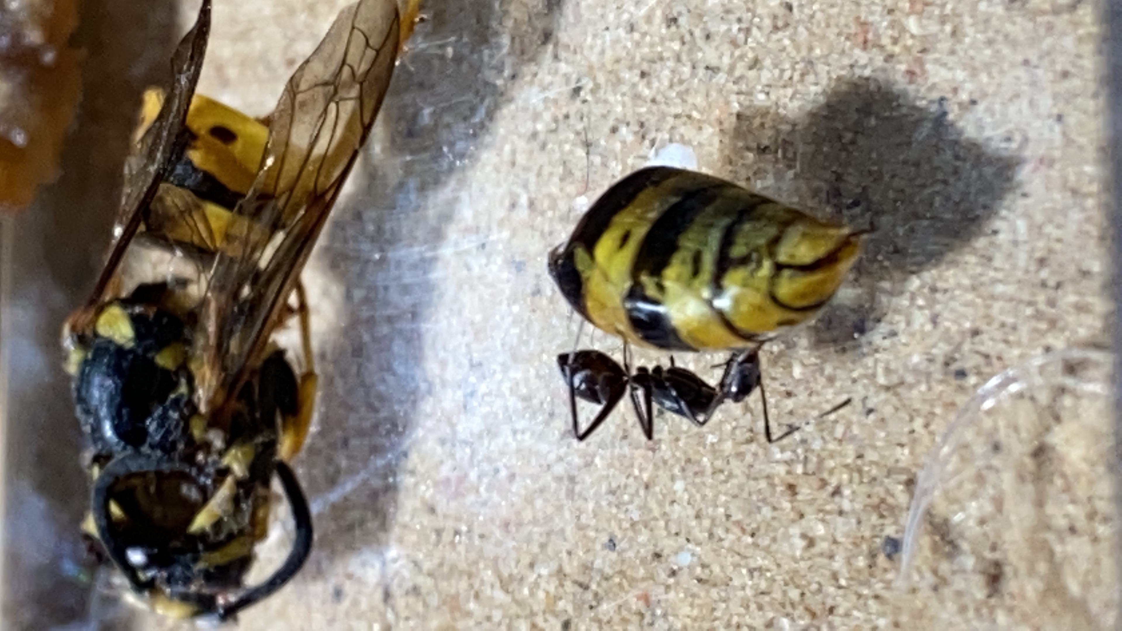 Außerdem hat meine Mutter, die wohnt in der Nachbarschaft, ein neues Coronalockdownhobby: Insektenjagd. Sie stellt mir fast täglich etwas vor die Haustür: ein RG mit einem Marienkäfer, ein Marmeladenglas mit einer Spinne, eine Tupper mit einer Wespe,... Alles abbrühen und rein da!!! Bisherige Leibspeisen aber ganz klar: Fruchtfliegen und Wespen!