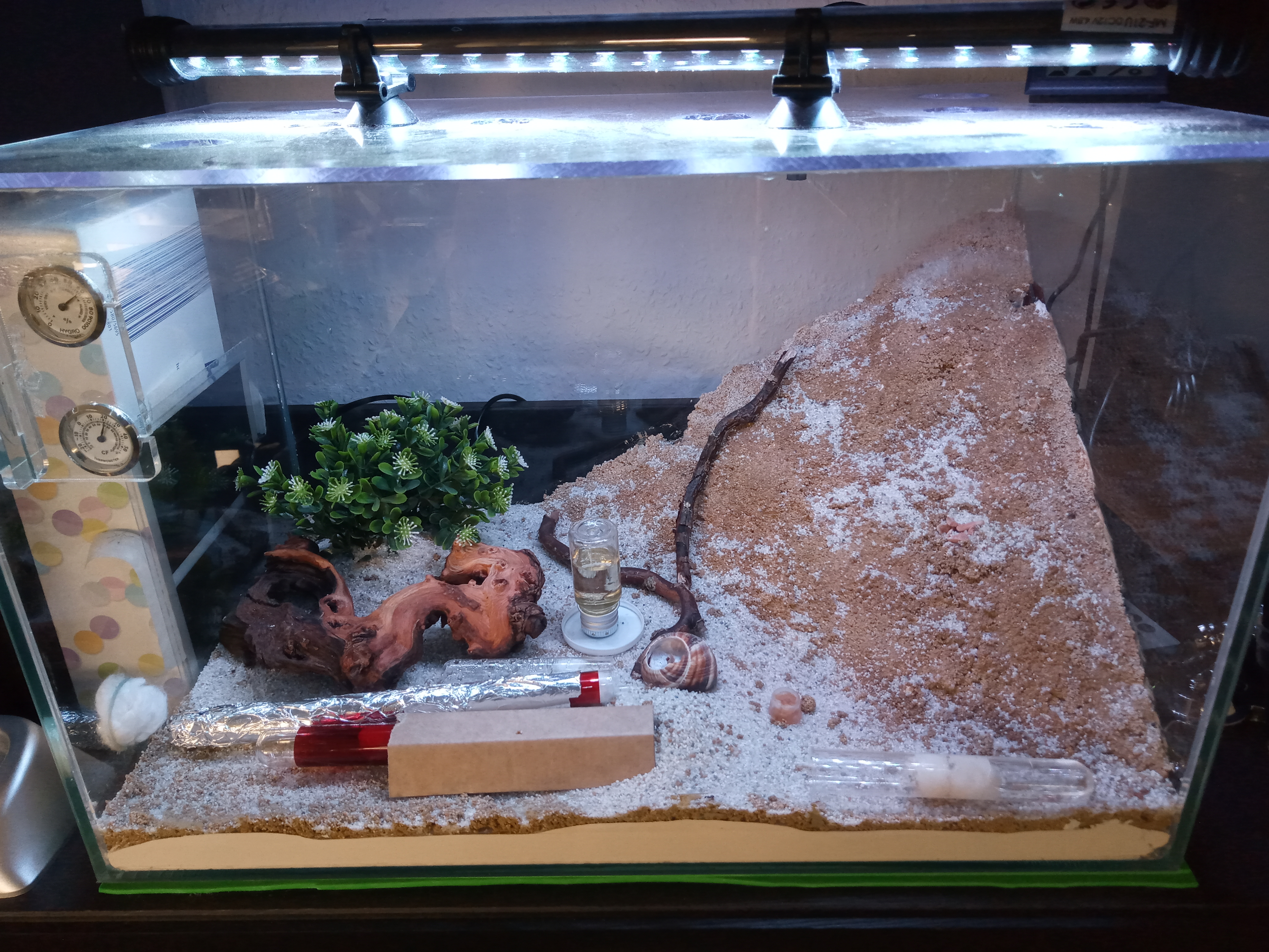 Das zweite Problem ist meine erste selbst gebaute Arena/Nest Kombi Ich hatte beim Bau einige Erfahrungen sammeln müssen, so will ich es mal nennen. Das eingegossene Gipsnest (Nr.3 ) wollte nicht mehr plan an der Scheibe anliegen, weshalb ich mich dazu entschlossen habe es separat mit Hobbyglasplatten und Aquariumsilikon zu verschließen und dieses dann ins Aquarium zu kleben. Das ist mir semigut gelungen, eine Arbeiterin zeigte mir kürzlich das sie quasi überall durch konnte. Im Nachhinein betrachtet sind die Kammern auch viel zu groß.