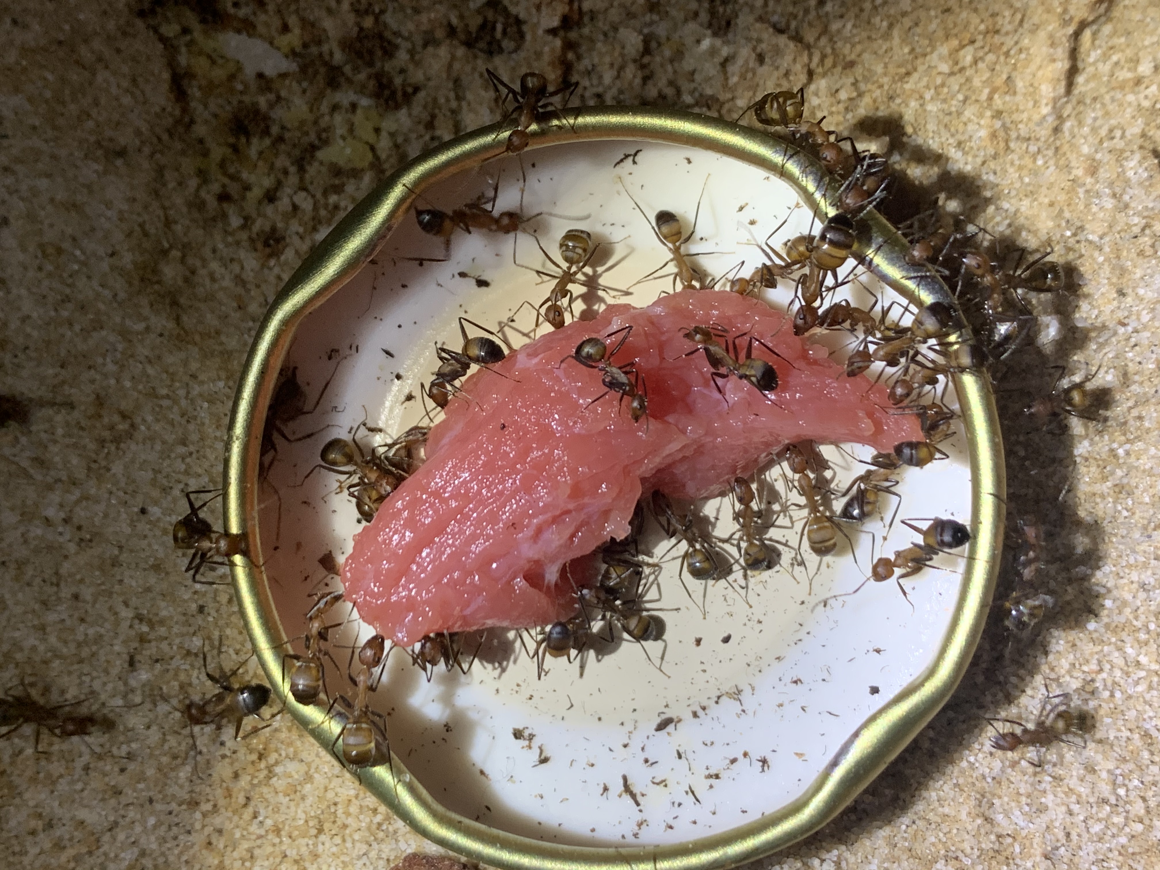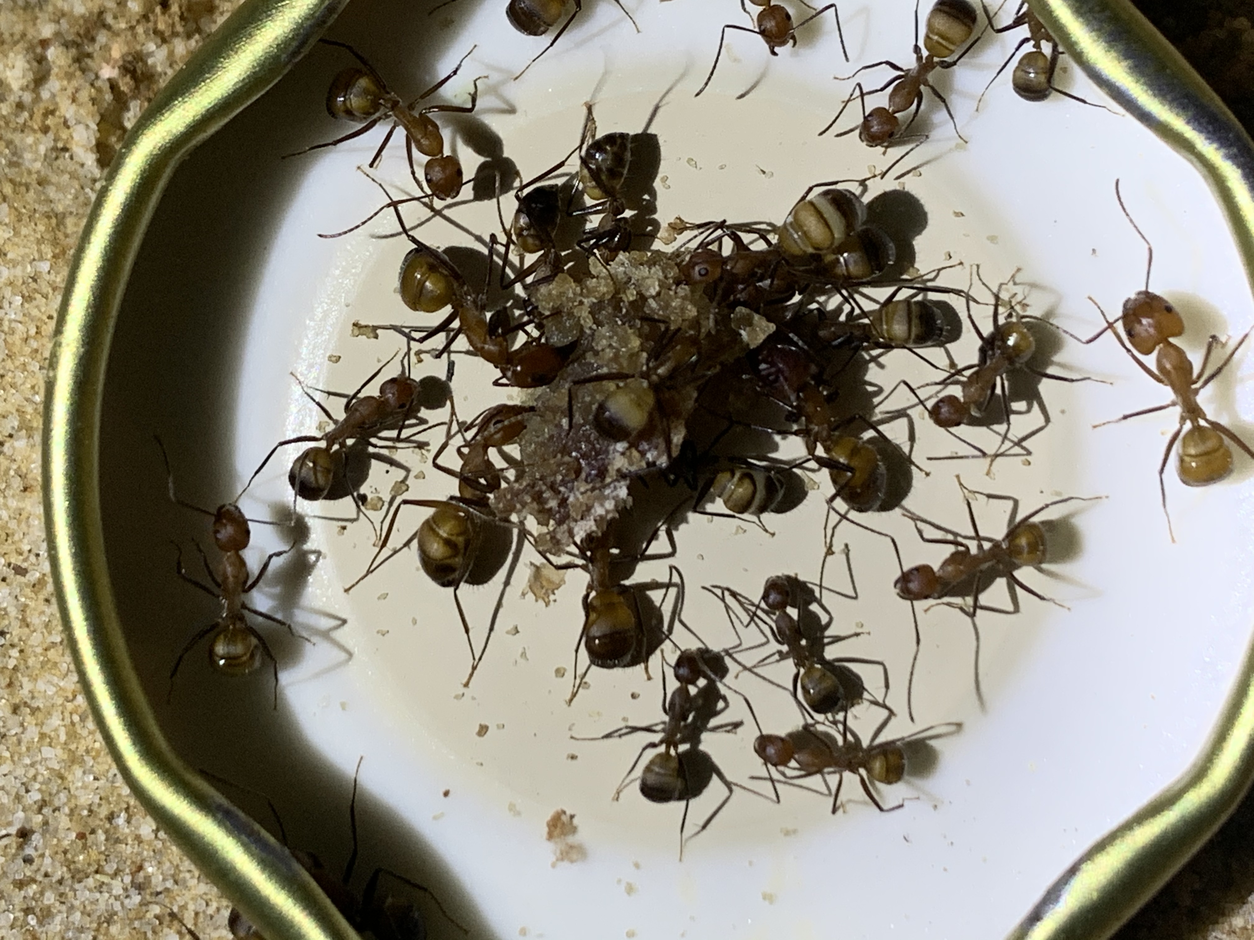 Puppen schlüpfen (ist „schlüpfen“ überhaupt das richtige Wort?) Futter kann ich momentan auch nicht mehr richtig abwechseln, weil Corona-Lockdown geht man viel seltener einkaufen und eine Büchse Ravioli will ich für die Ameisen nicht extra öffnen!