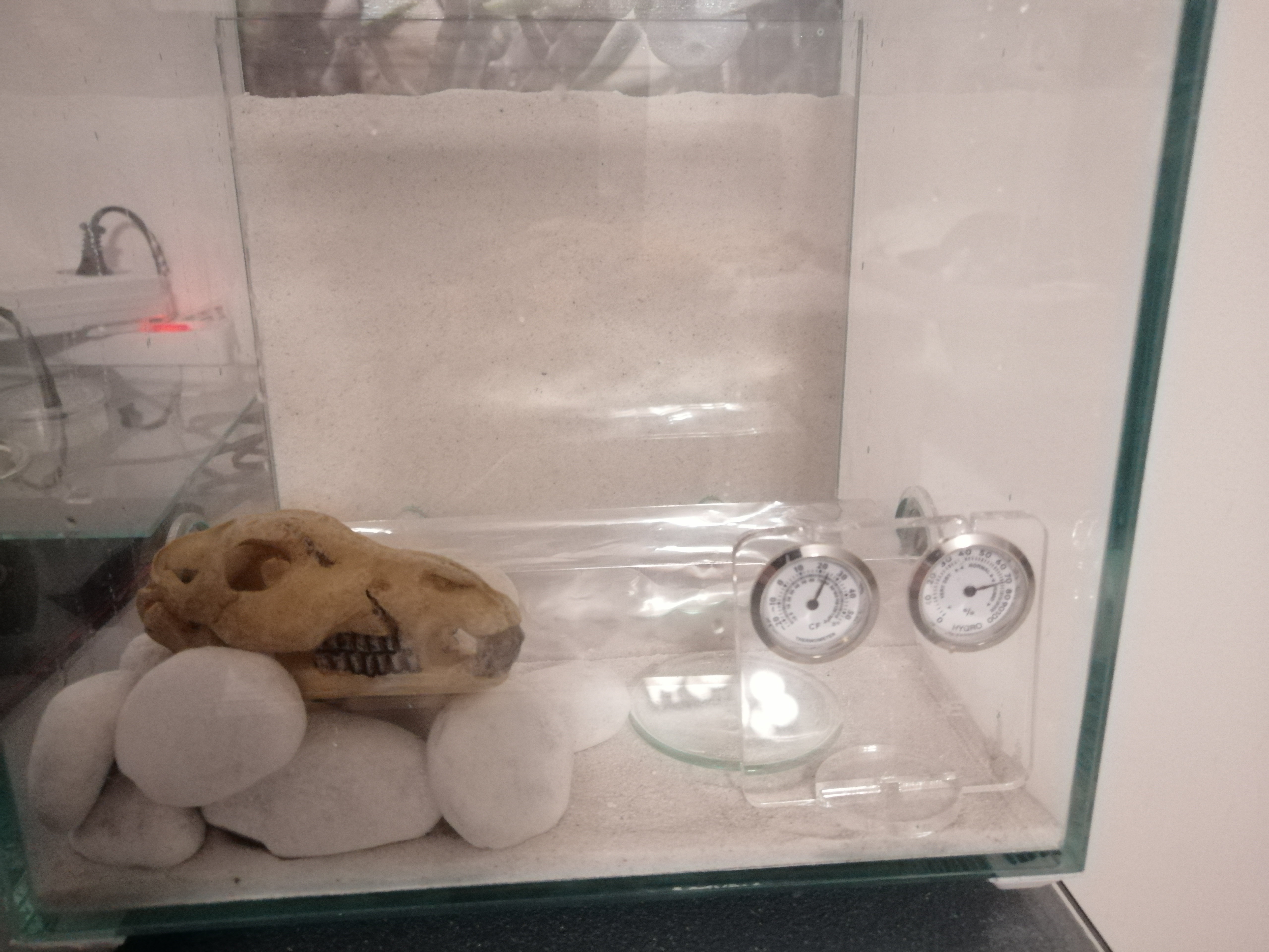 Ach und als kleine side Story. Voller enthusiasmus wollte ich ursprünglich eine Halogen 35 Watt starke Lampe an die Öffnung setzen. Es sind zwar gemütliche 32 Grad innerhalb von einer Stunde geworden, aber ja.. brennende Ameisen sind auch nicht das wahre, erklärte mir der Kunden support. Also Lampenständer gekauft, und zufrieden bin ich dennoch nicht. Momentan liege ich bei 21 Grad. Das sollte kein Dauerzustand werden. Da ich jedoch nicht ständig an Höhe der Beleuchtung und Luftzufuhr selber spielen möchte gab es im Baumarkt eine kleine Neuland Möglichkeit