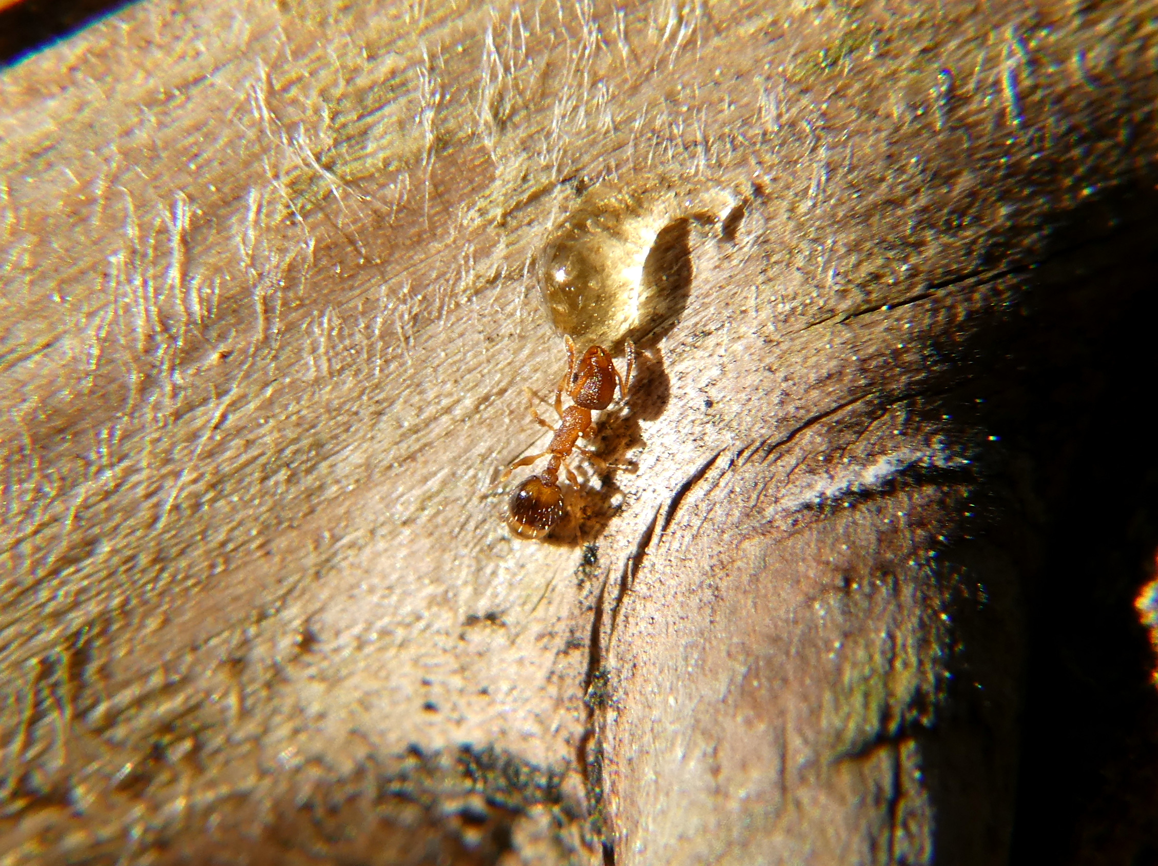 Formica sanguinea beim Honigschlürfen. Sehr bissige Biester, aber tolle Färbung...