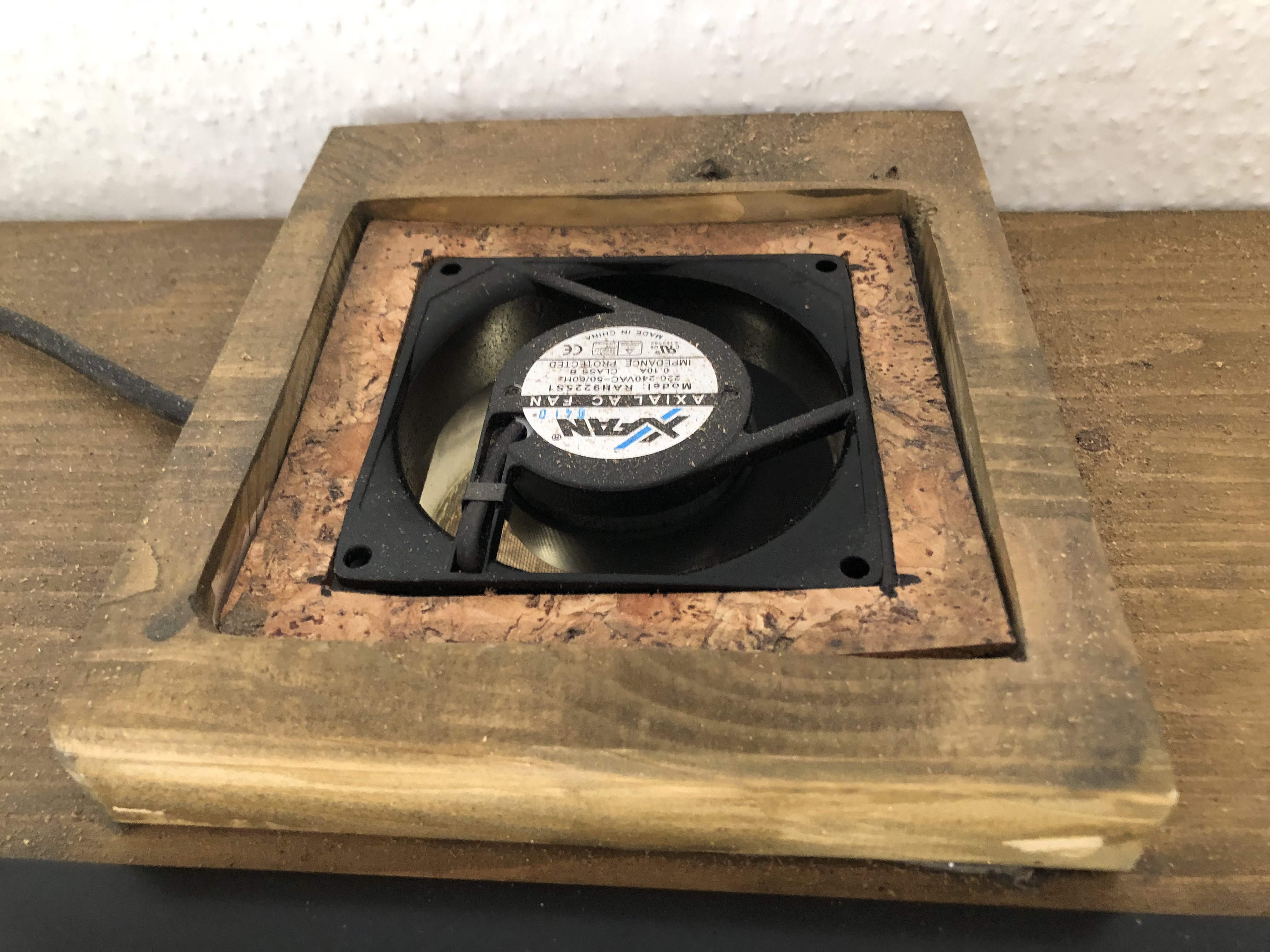 hier arbeitet je Formikarium ein in DĂ€mmstoff gelagerter leiser LĂŒfter. Alle 30min fĂŒr 15min wird frische Luft durch zwei seitliche EinlĂ€sse angesaugt Das wĂ€re das Gröbste zum Formikarium. Bisher funktioniert es wie geplant, es wurde gut angenommen. Die FĂŒtterung erfolgt auf den Plattformen die durch eine Luke zugĂ€nglich sind NatĂŒrlich musste auch ein neues gröĂeres Nest her. Der ganze Kasten wiegt schon ordentlich, also nix fĂŒr Transporte. Das Nest hĂ€ngt extern daneben und ich wollte es kompakt haben, zum Abnehmen wegen der