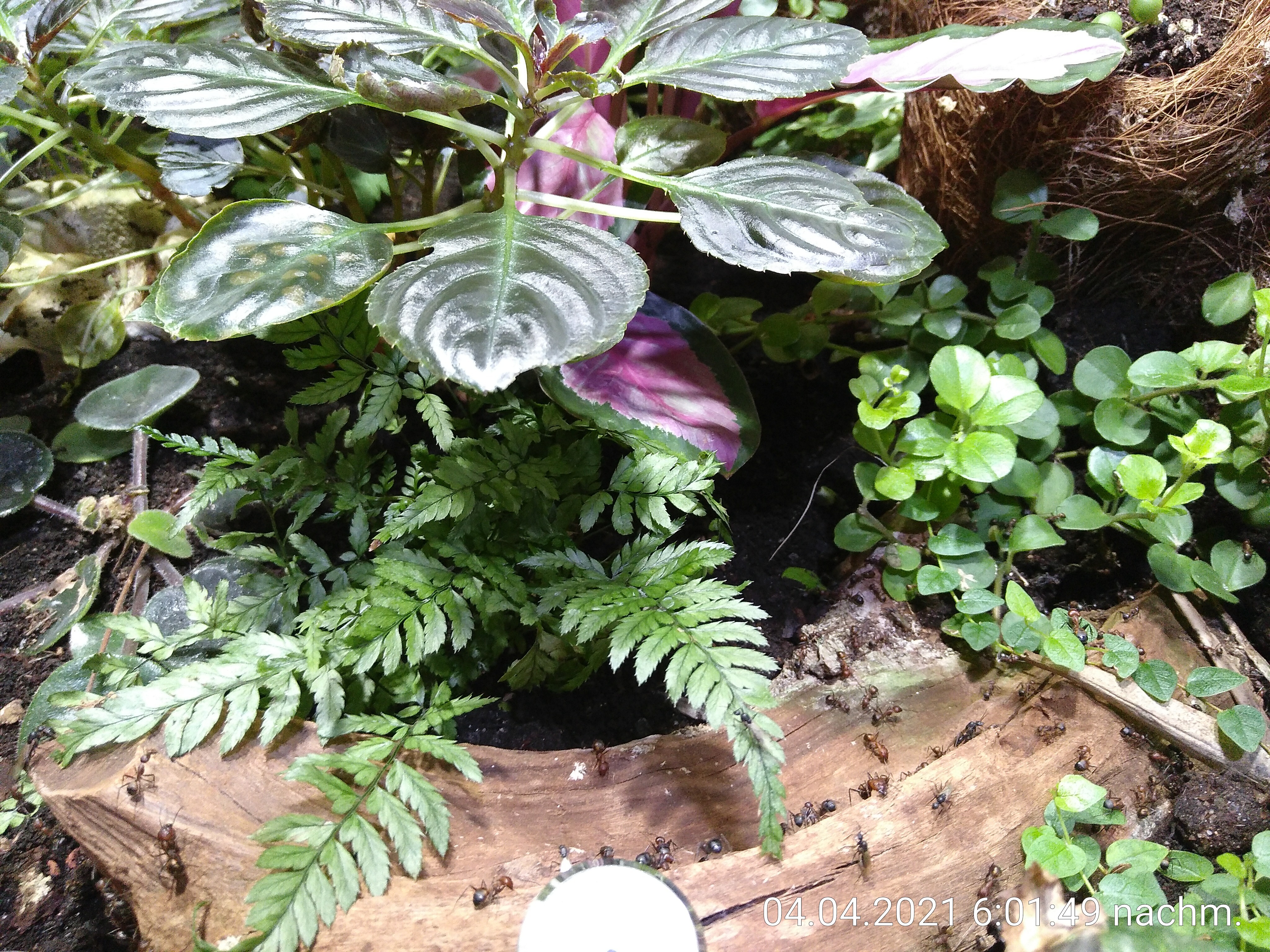 Und der Dschungel dschungelt so vor sich hin. Sie bauen ihre Tunnel weiter aus und die Pflanzen werden immer dichter und müssen natürlich auch regelmäßig erkundet werden. Ein paar Pflanzen haben die ersten Monate aus verschiedenen Gründen nicht überlebt. Ein Moos wurde einfach mit Abraum verdeckt, ein anderes hat zu wenig Licht unter der zentralen Pflanze mit den pinken, großen Blättern bekommen. Für die anderen beiden waren die Verhältnisse wohl nicht passend, mein Fehler bei der Auswahl also. Dafür habe ich aber auch neue Pflanzen dazu gesetzt. Eine Ranke mit kleinen grünen Blättern habe ich geteilt und an zwei Stellen an der Rückwand eingepflanzt. Die in der hinteren rechten Ecke macht ihren Job schon super und begrünt die Rückwand erfolgreich. Vor ein paar Wochen gab es dann noch einen Farn für eine leere Stelle und ein kleines Efeu an einer anderen Stelle an der Rückwand. Vor allem die rankenden Pflanzen sorgen jetzt so langsam dafür, dass es überall ein bisschen grüner wird. Bin gespannt, wie das in ein paar Monaten erst aussieht. Mein Plan scheint aufzugehen :)