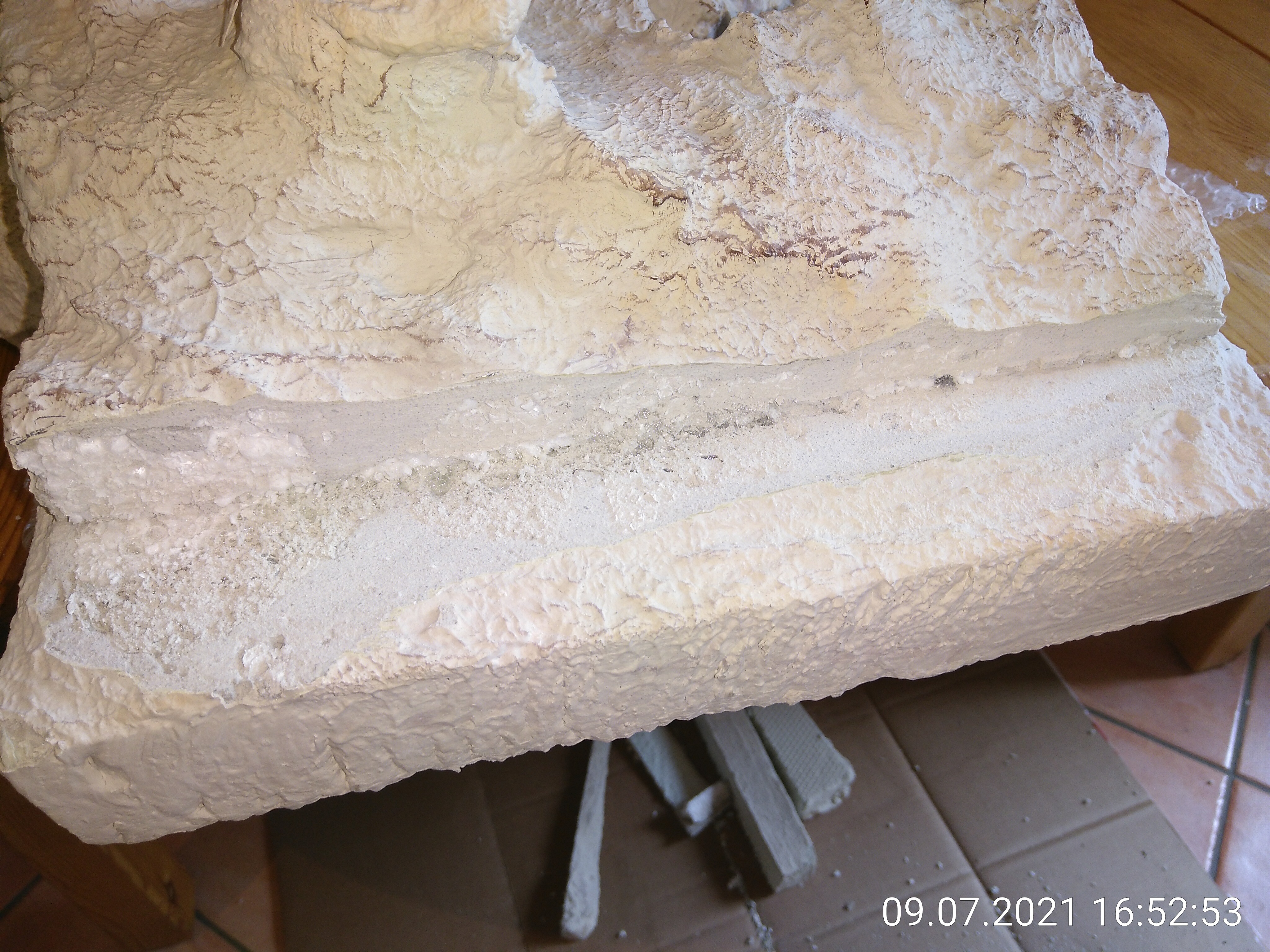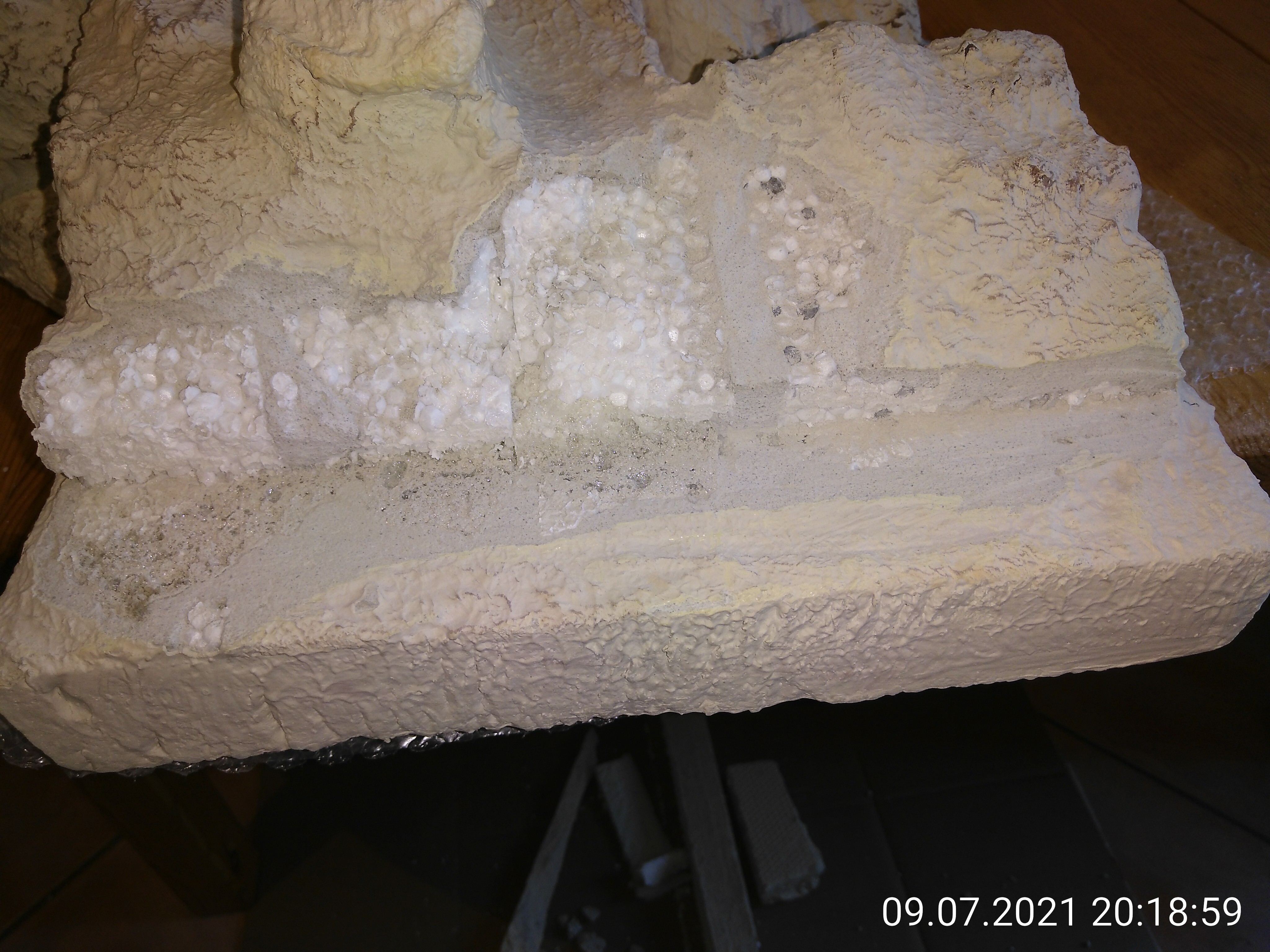 bisher bin ich noch nicht viel weiter. Die vergipsten Schnittflächen sind nach dem Trocknen leider weiß. Das Einfärben hat überhaupt nicht funktioniert. Feucht sah es noch echt gut aus. Ist aber auch egal, man sieht die weißen Teile später bestimmt so gut wie gar nicht.