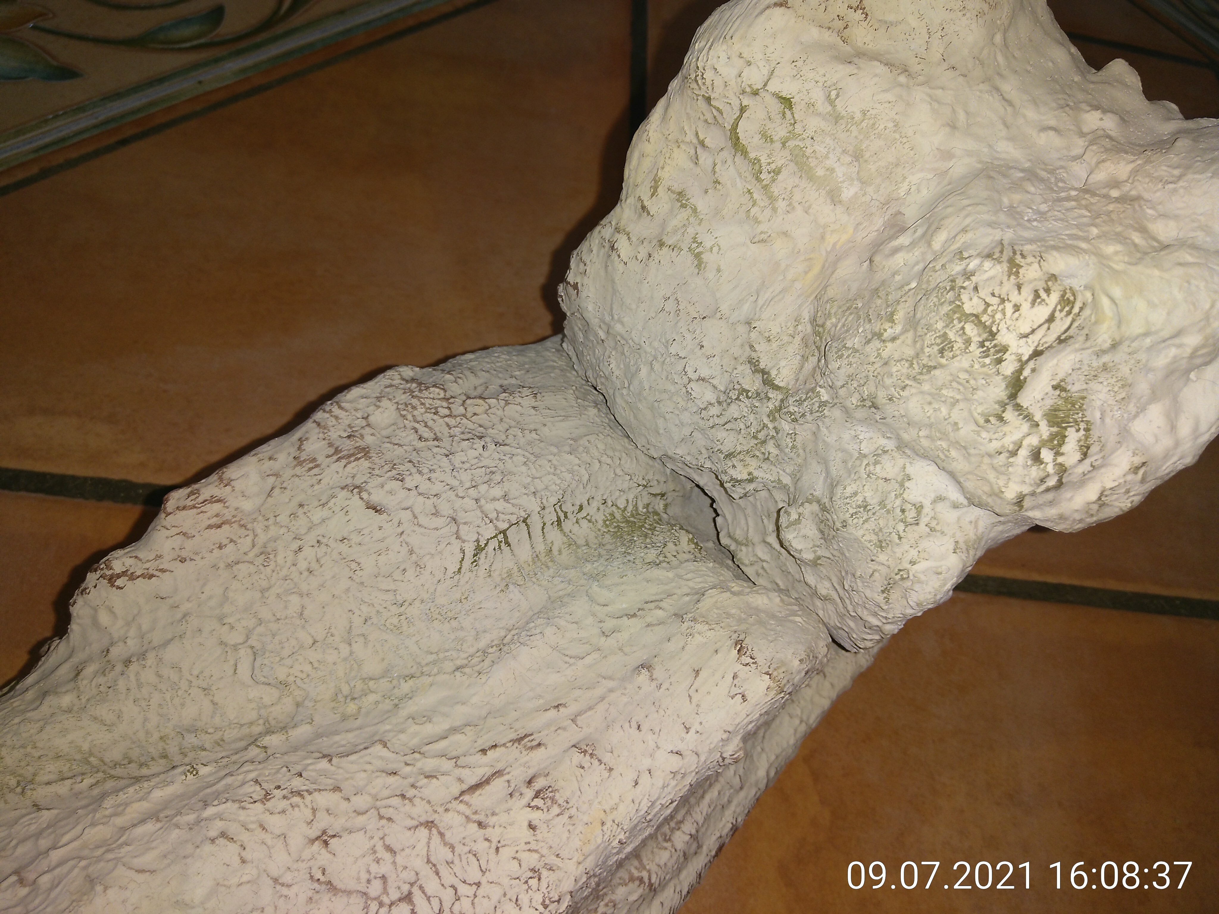 Das war gestern. Habe aus meinen Fehlern gelernt und es heute besser gemacht. Benutzt habe ich nur eine Säge, ein Messer und eine Feile. Das Teil besteht aus einer stabilen Platte mit Styropor für die Form und ist mit Gips verputzt.