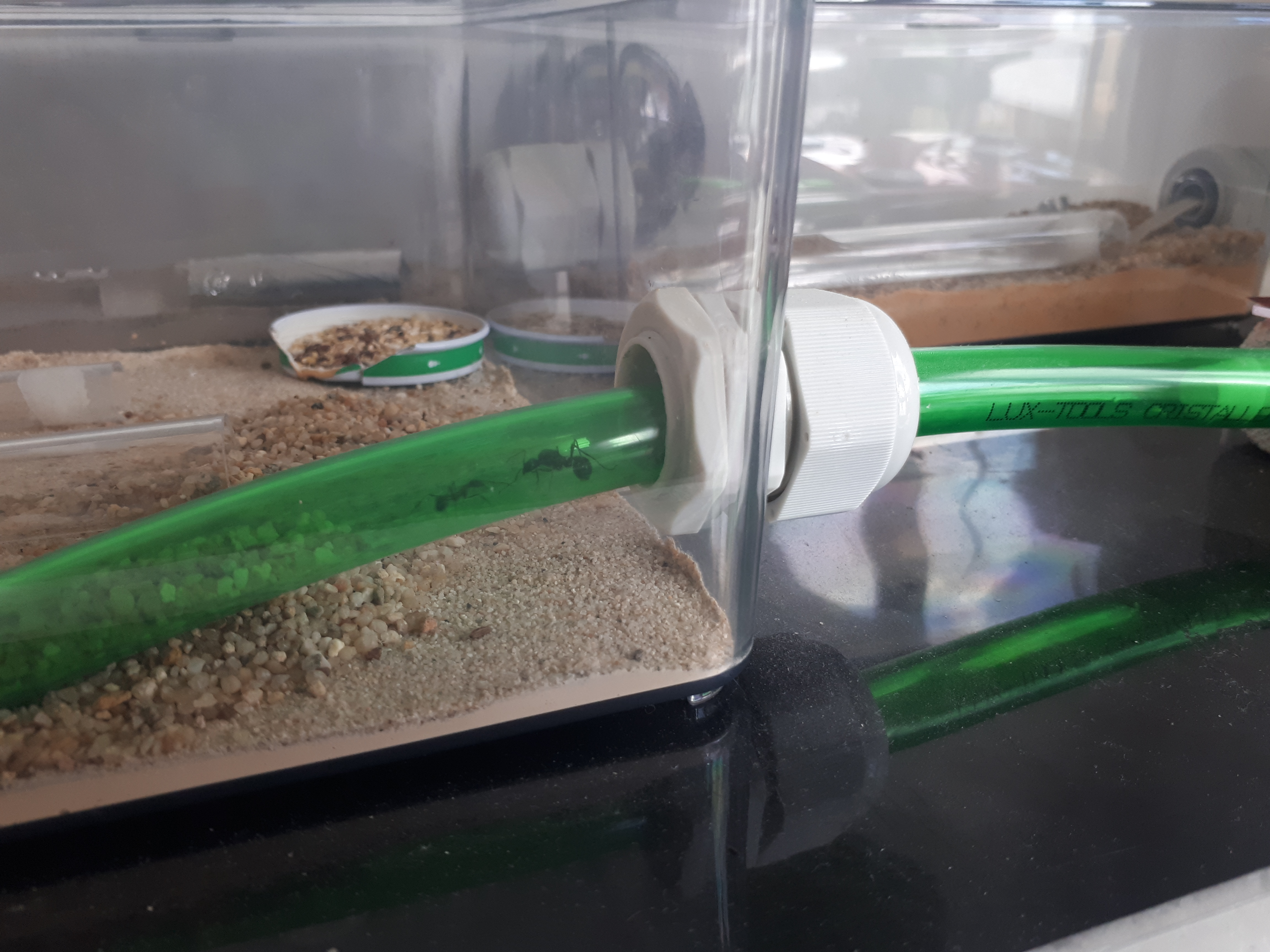 Ich habe eine - wie ich finde, fĂŒr den Erstversuch sehr schöne - Arena gebastelt, in der sich die Kleinen WĂŒstenlĂ€ufer freier und weiter bewegen können.