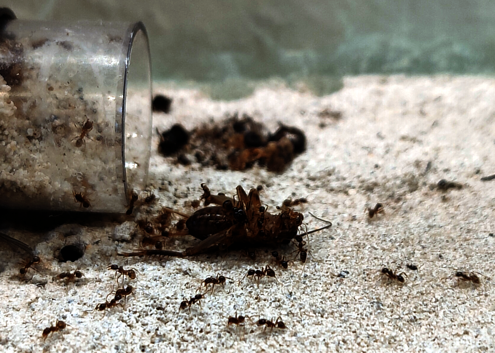 Habe heute Morgen bei KFKA das von Harry gelesen mit den Fischflocken. WĂ€re es nicht direkt bei dem ersten Kaffee des Morgens gewesen, hĂ€tte ich vielleicht drauf schlieĂen können, dass es als Schabenfutter gemeint war und nicht als Ameisenfutter. Nun ja den Pheidole pallidula schmeckte es wohl dennoch was ich ihnen da anrĂŒhrte.
