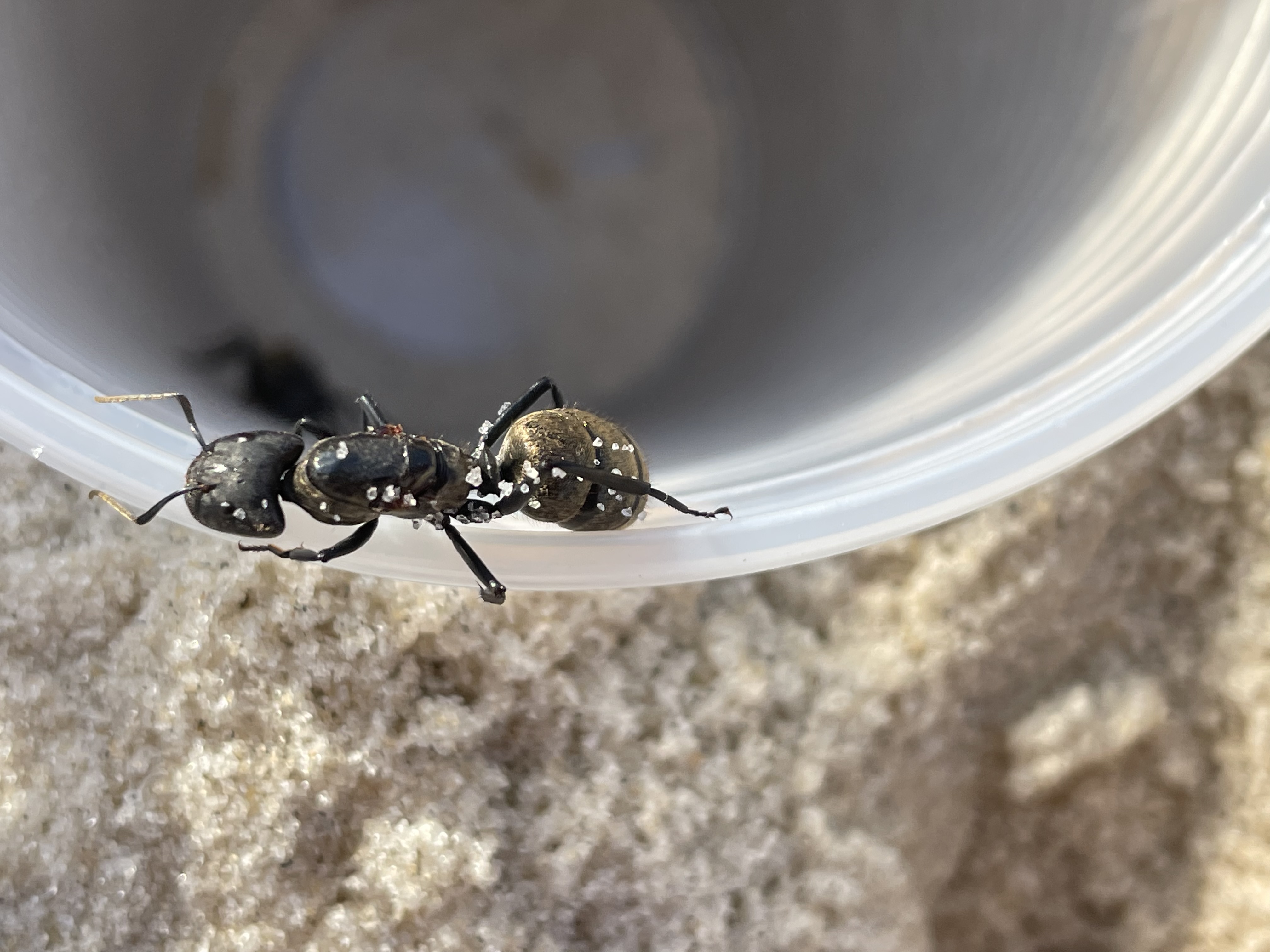 Für später falls die Gründung klappt und die Art weiter unbekannt bleibt würde ich dir empfehlen ein Ytongnest zu basteln falls du nicht die Möglichkeit hast was zu kaufen. Die Arena mit Strand-Sand und Muscheln, das hätte doch was, da du sie ja auch am Strand gefunden hast.