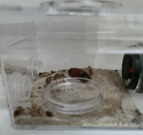 Brut vorhanden und wie bereits beschrieben zwei Arbeiterinnen. Man sieht bereits jetzt Größenunterschiede bei den Arbeiterinnen.