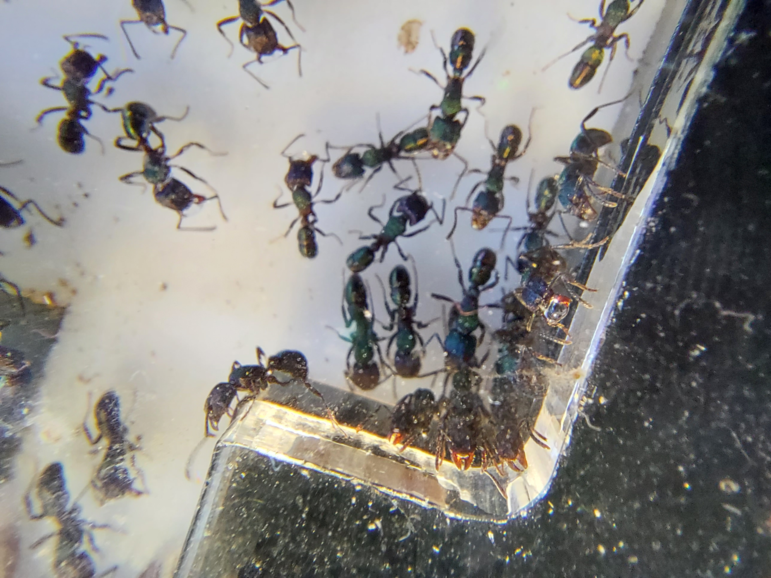 Die Haltungsbedingungen wĂŒrde ich "Myrmica rubra"-Ă€hnlich bezeichnen. Gerne feucht und gerne etwas wĂ€rmer, aber natĂŒrlich ganzjĂ€hrig (empfinde ich als Vorteil).
