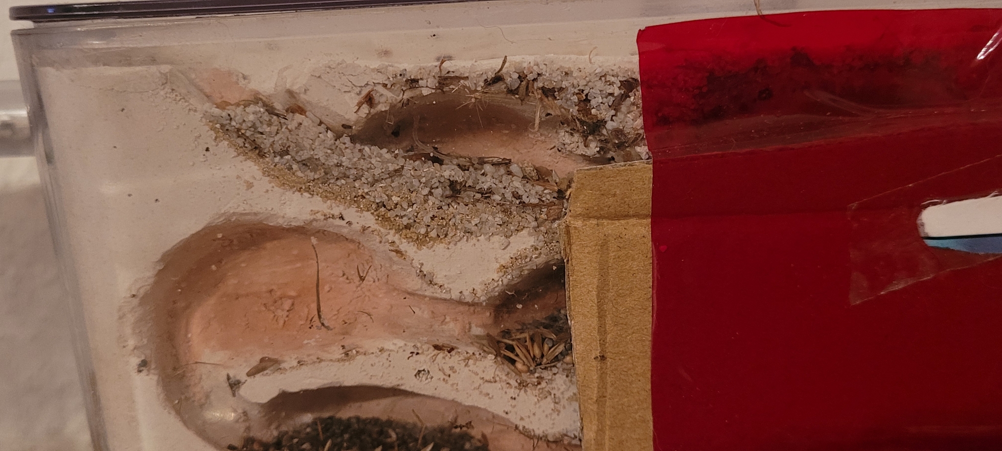 Eine Überlegung wäre noch, jetzt vor dem Einzug der Ameisen, seitlich 1-2 Bohrungen zu setzen für spätere Erweiterungen per Schlauch oder Acrylrohr.