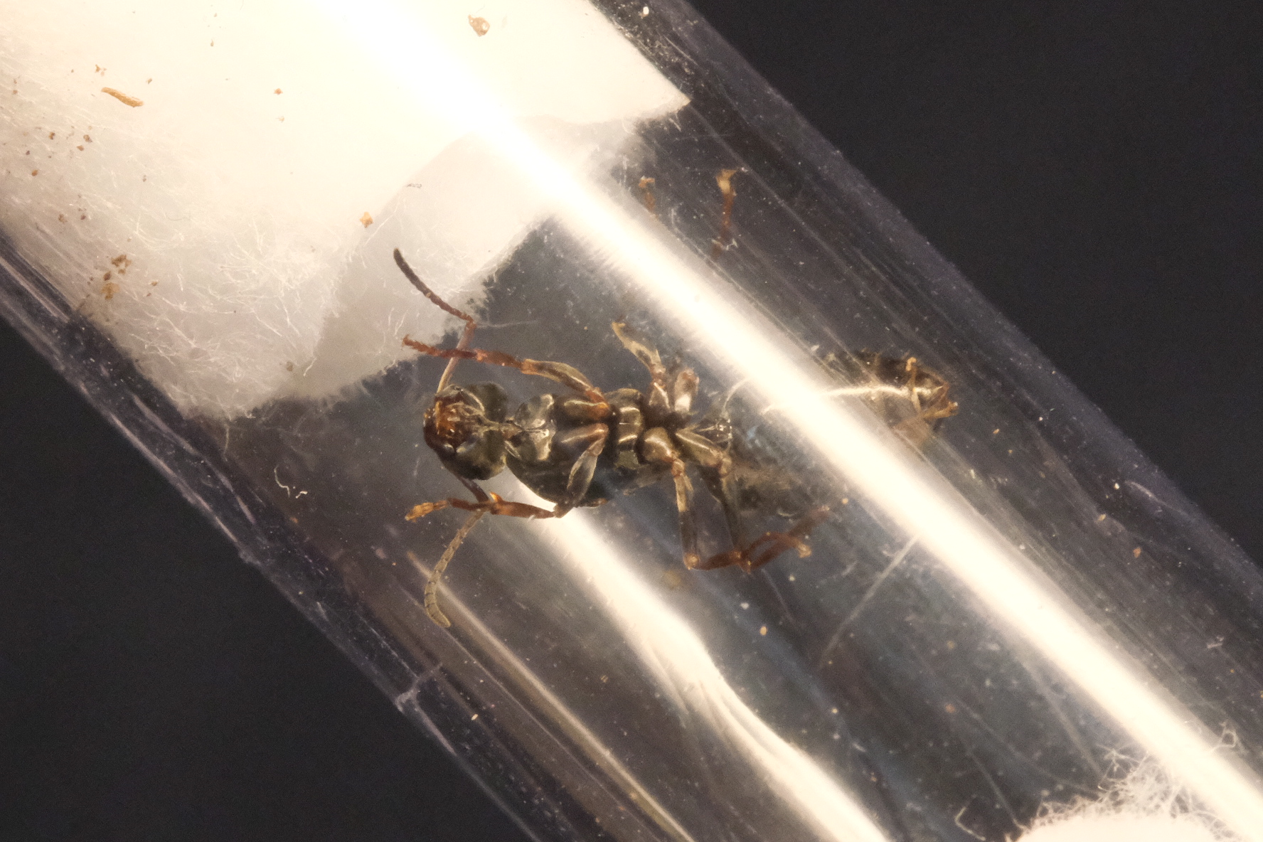 - Tier hatte noch einen halben Flügel, als wir sie eingesammelt haben. Der ging im Röhrchen direkt ab und liegt nun darin.