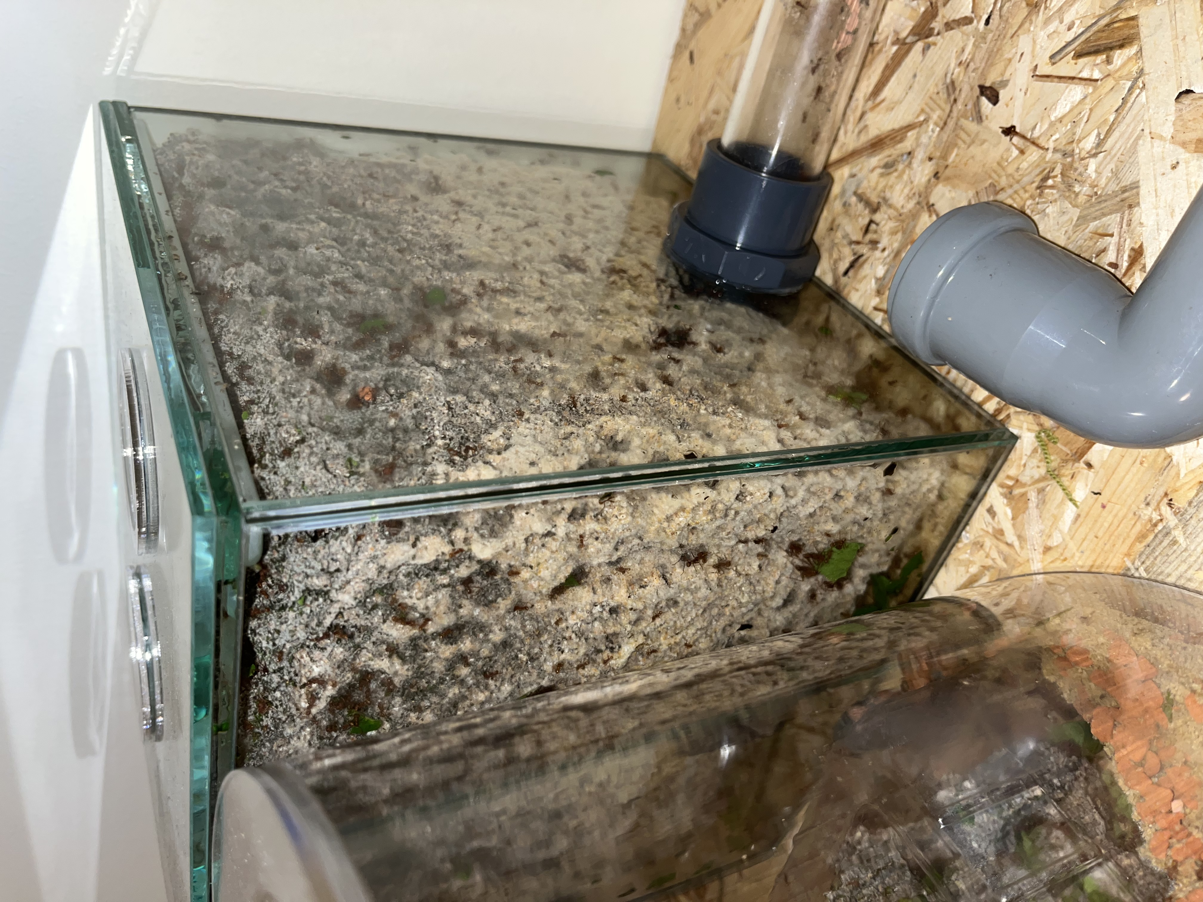 Hier der groĂe Pilz: Da die Arena voll ist, habe ich ein kleines StĂŒck von dem Pilz genommen und in den Zylinder gesetzt. Mein Vorgehen wurde bestens angenommen und der Pilz im Zylinder wĂ€chst richtig gut. Die Zahl der Arbeiterinnen nimmt auch exponentiell zu. Seit Anfang Juni ist es echt extrem geworden. Die ersten gröĂeren Ameisen kann ich auch schon bald begrĂŒĂen in ihrer kleinen Welt, hier mal ein Bild: Heute gab es mal ein StĂŒck Apfel, die streiten sich regelrecht darum.