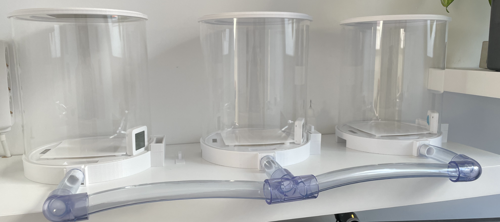Ich plane die kleinen nach ganz rechts zu setzen in der Mitte die Futterkammer und ganz links die Abfallkammer. Mal schauen wie es wirklich wird. In der Mitte und ganz links scheint morgens direkt die Sonne rein und daher sehe ich das als nicht so gut für den Pilz. Wie sie es am Schluss entscheiden bleibt bei Ihnen. Habe geschlossene Deckel und einen mit Edelstahldraht um die Luftfeuchtigkeit im Müllbecken auf ~ 50% zu haben. Die beiden anderen Becken werden auf 85-100% laufen.