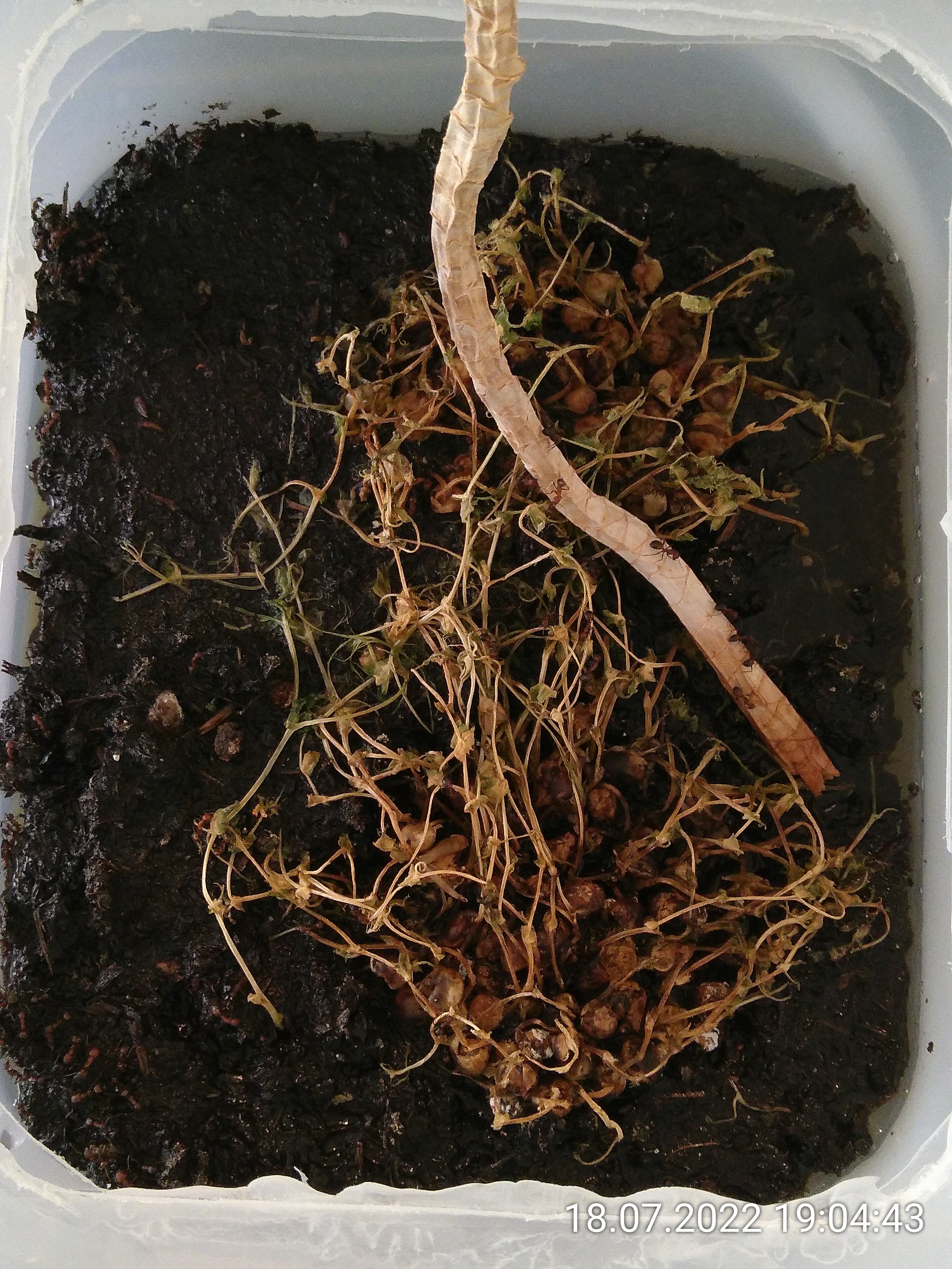 Mach dir keinen Stress mit der Rose. Sie muss ja nur zwei Wochen überleben, bis einige Läuse drauf sind, um die Interaktion mit den nicos zu testen. Deine Kolonie ist allerdings ein einziger Staubsauger, was Biomasse angeht. Es kann gut sein, dass sie sich bei dieser Größe gar nicht mit Läusen anfreunden lassen. Um das rauszufinden, muss die Pflanze ja nicht lang überleben.