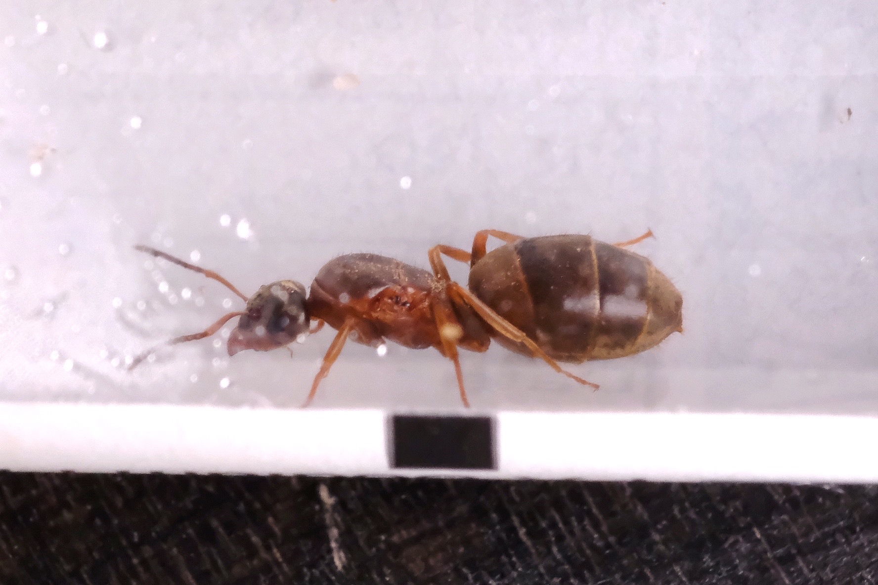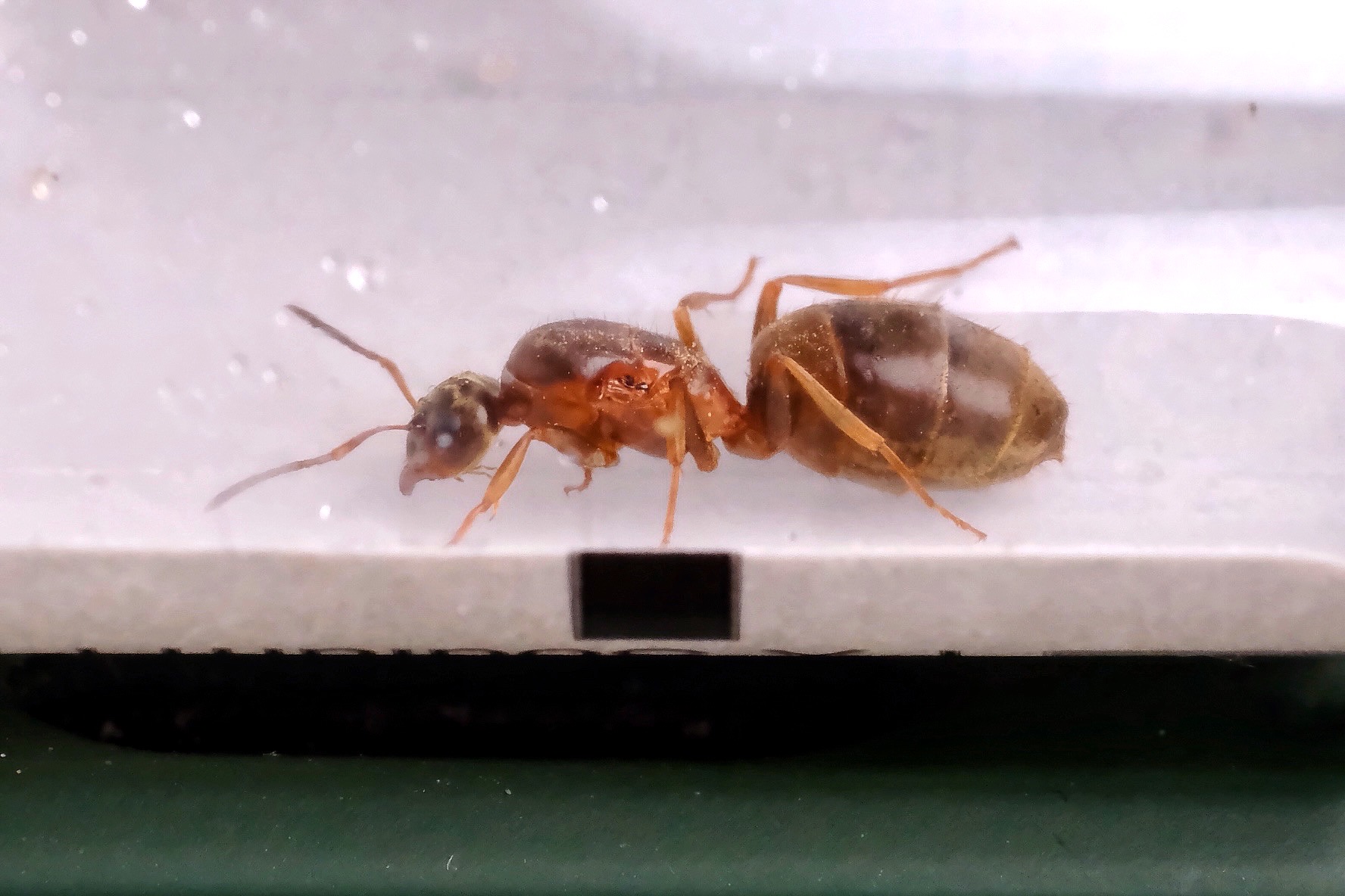 Im Kindergarten haben die Kinder ein paar Ameisenköniginnen auf dem Gelände, unter einer Kastanie, entdeckt und mich gefragt, ob ich sagen kann, was das für eine ist. Ich hab' gesagt, ich zeig sie mal den Profis hier und frag' nach, ob es das Gleiche ist, was neulich bei uns auf dem Balkon gelandet ist: Lasius emarginatus?