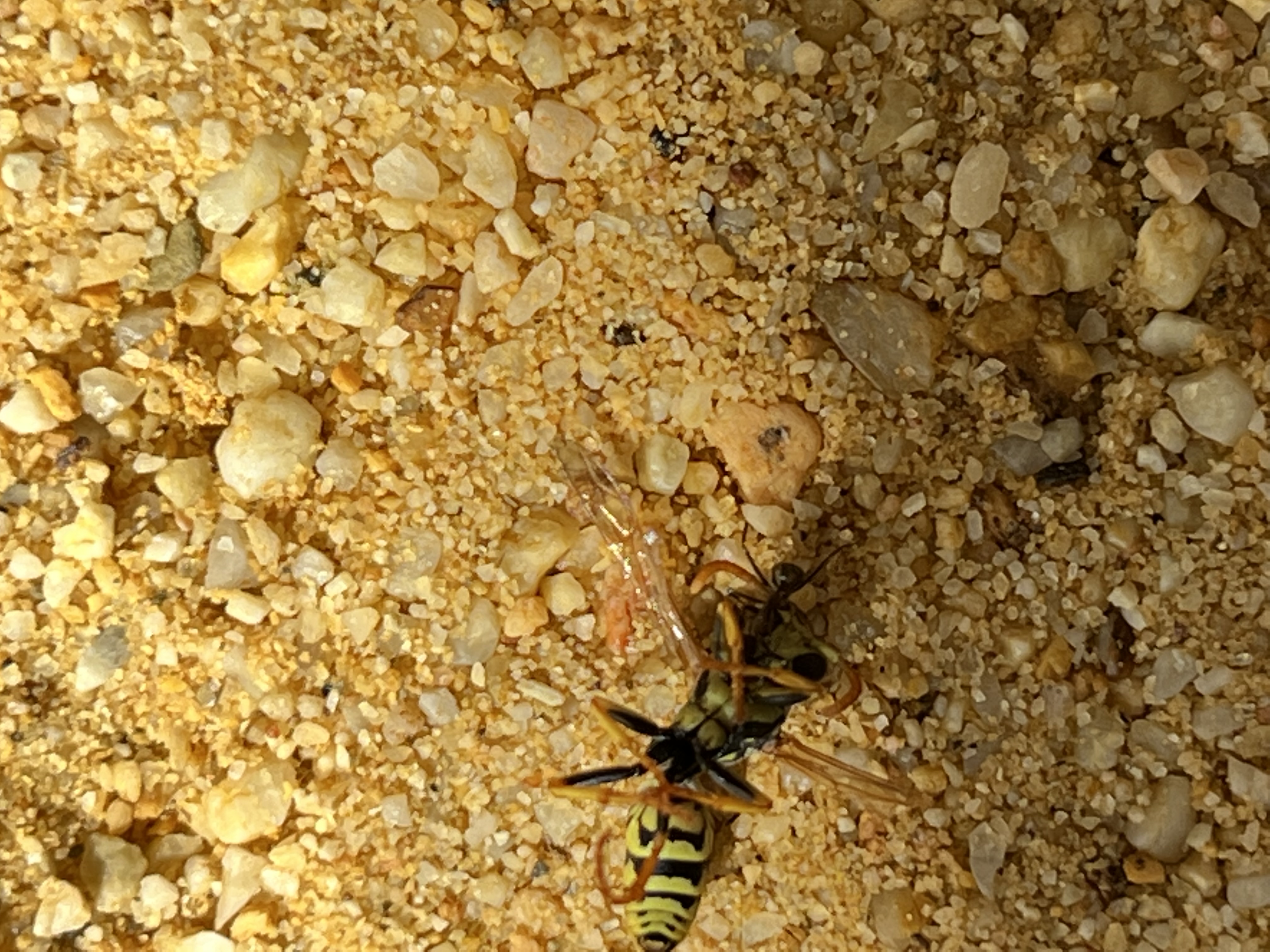 Meine flĂŒgellose Fliege sitzt nur 5 cm daneben und schaut zu wie die Wespe zerlegt wird.