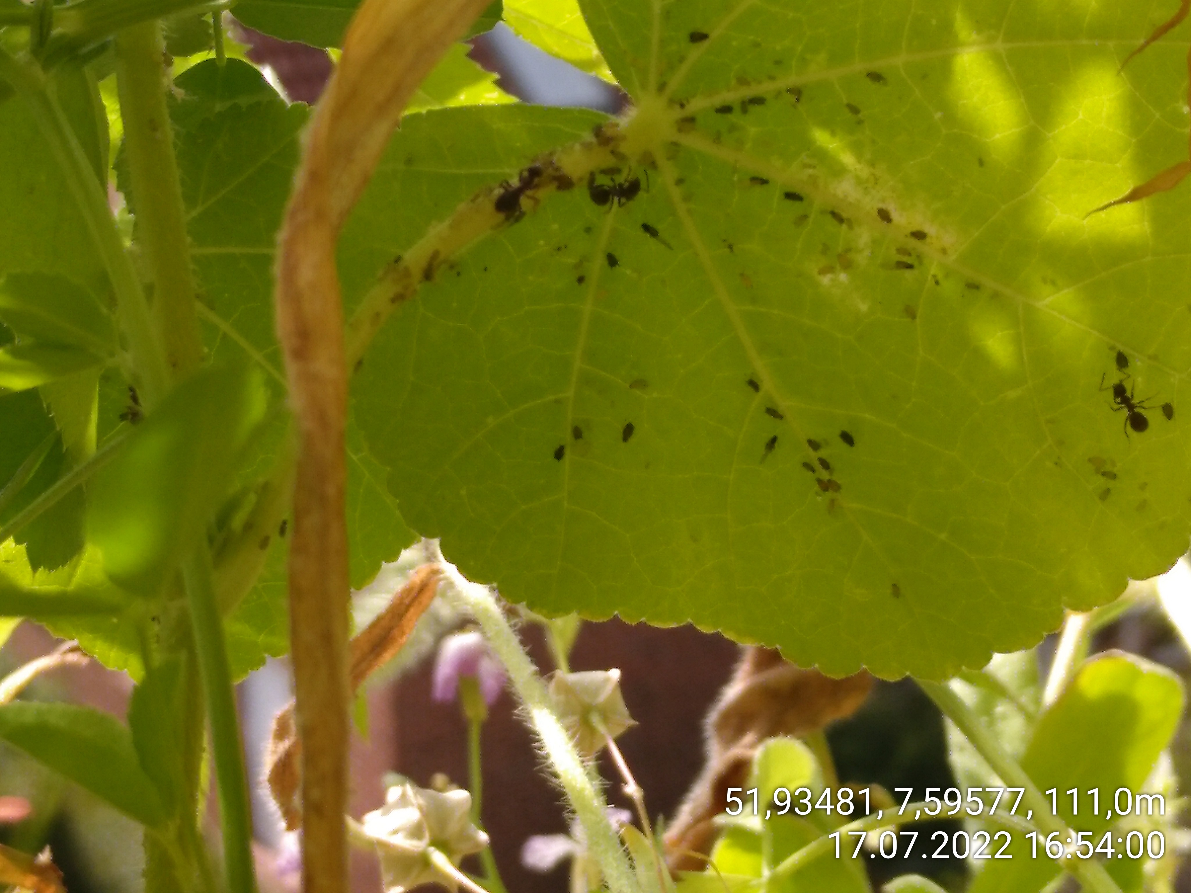 Und weil sich im Moment gerade alles um Läuse dreht, habe ich passenderweise gerade meine Lasius balconicus bei der Läusepflege beobachtet. Zum ersten Mal dieses Jahr.