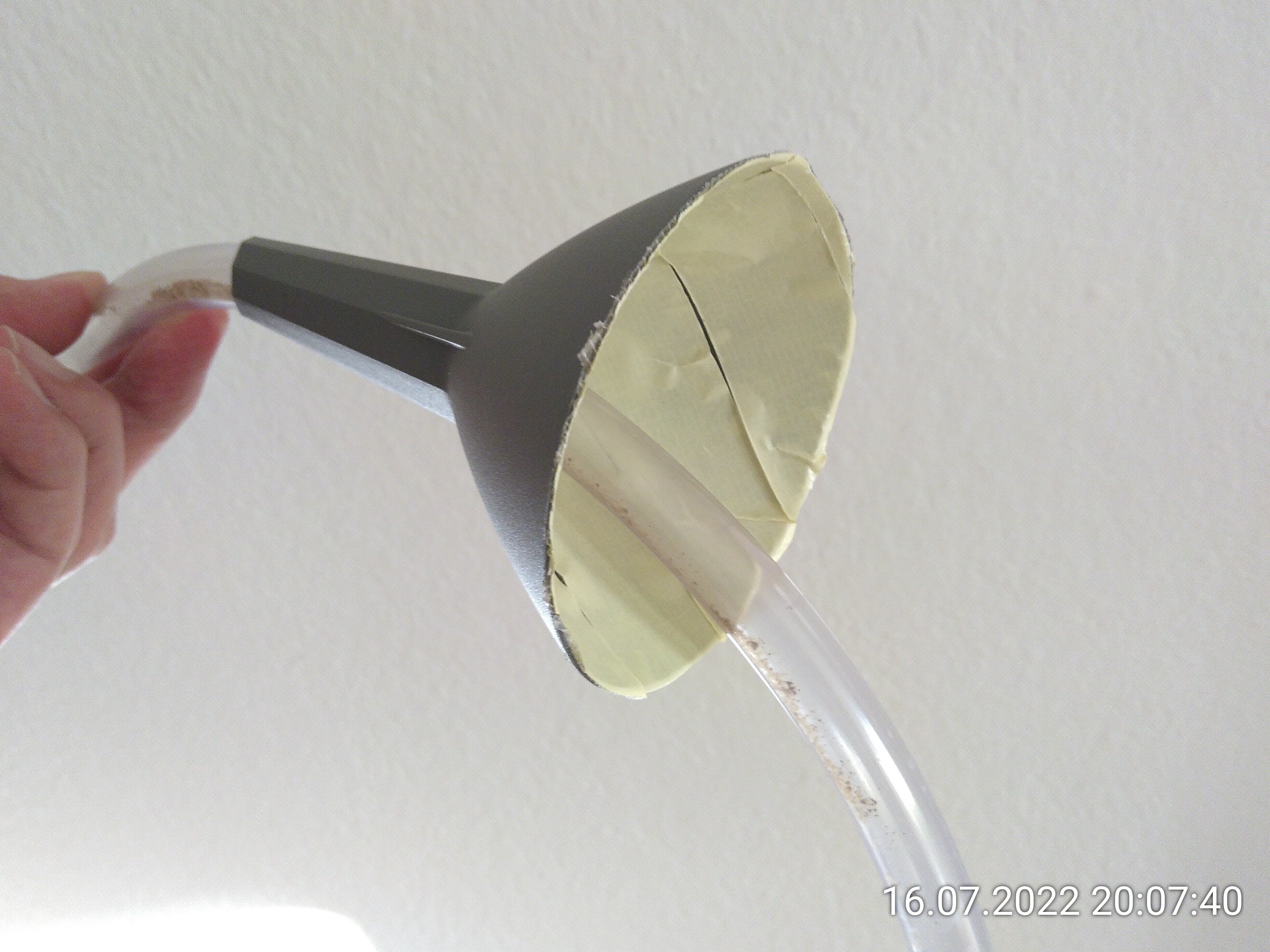 Ich hab ihn auch schon mit Klebeband für das Talkum vorbereitet.