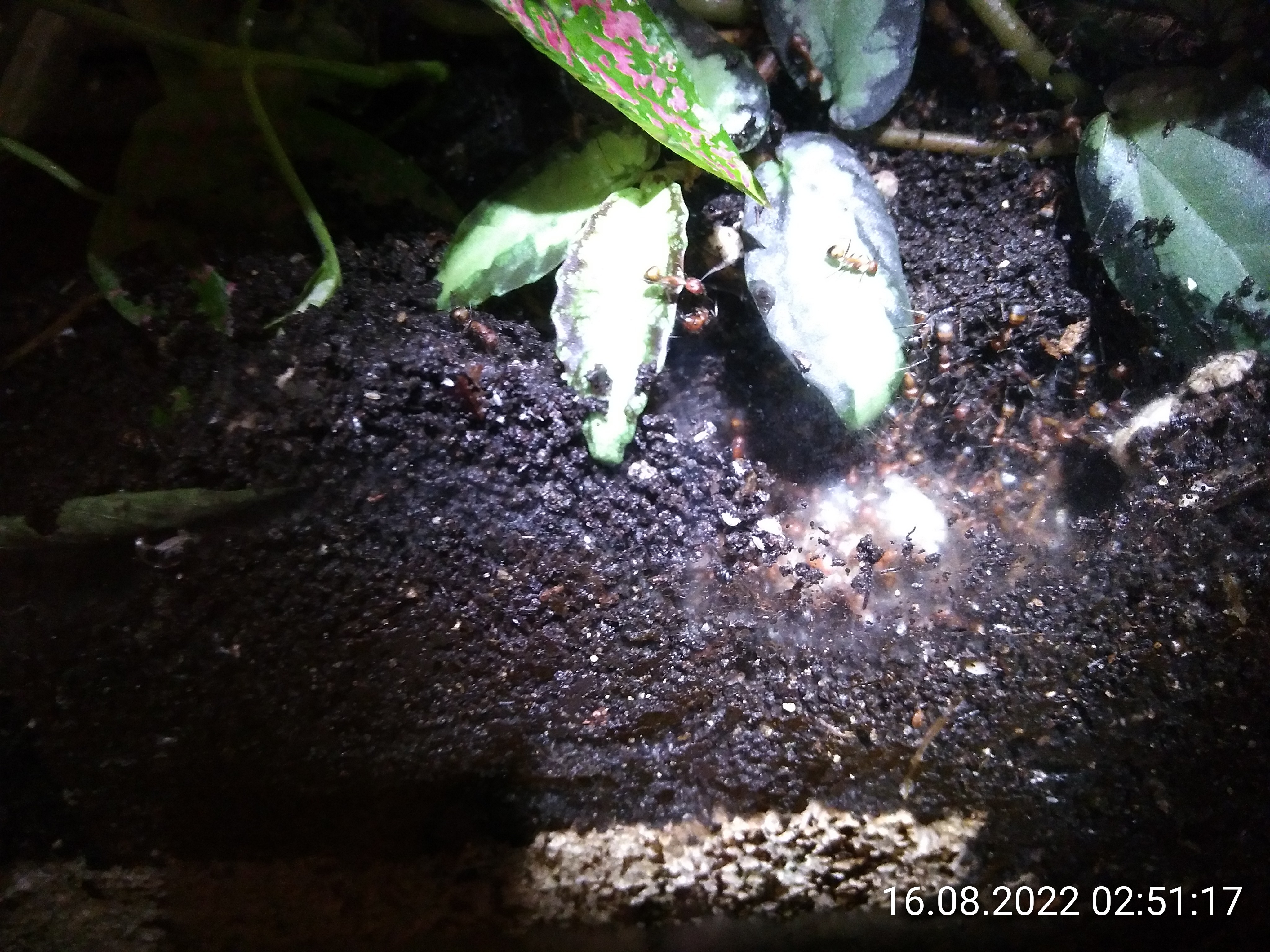 Die anderen Pflanzen habe ich dann doch verschont, auch wenn sie schon am Deckel angekommen sind. Da ich in den letzten Wochen immer nur maximal 5 Ameisen am Deckel hatte, wenn ich ihn abgenommen habe (und das war fast täglich), ist es einfach nicht nötig. Die Nicos haben wohl gemerkt, dass der Deckel uninteressant ist. Das ist zumindest meine Interpretation.