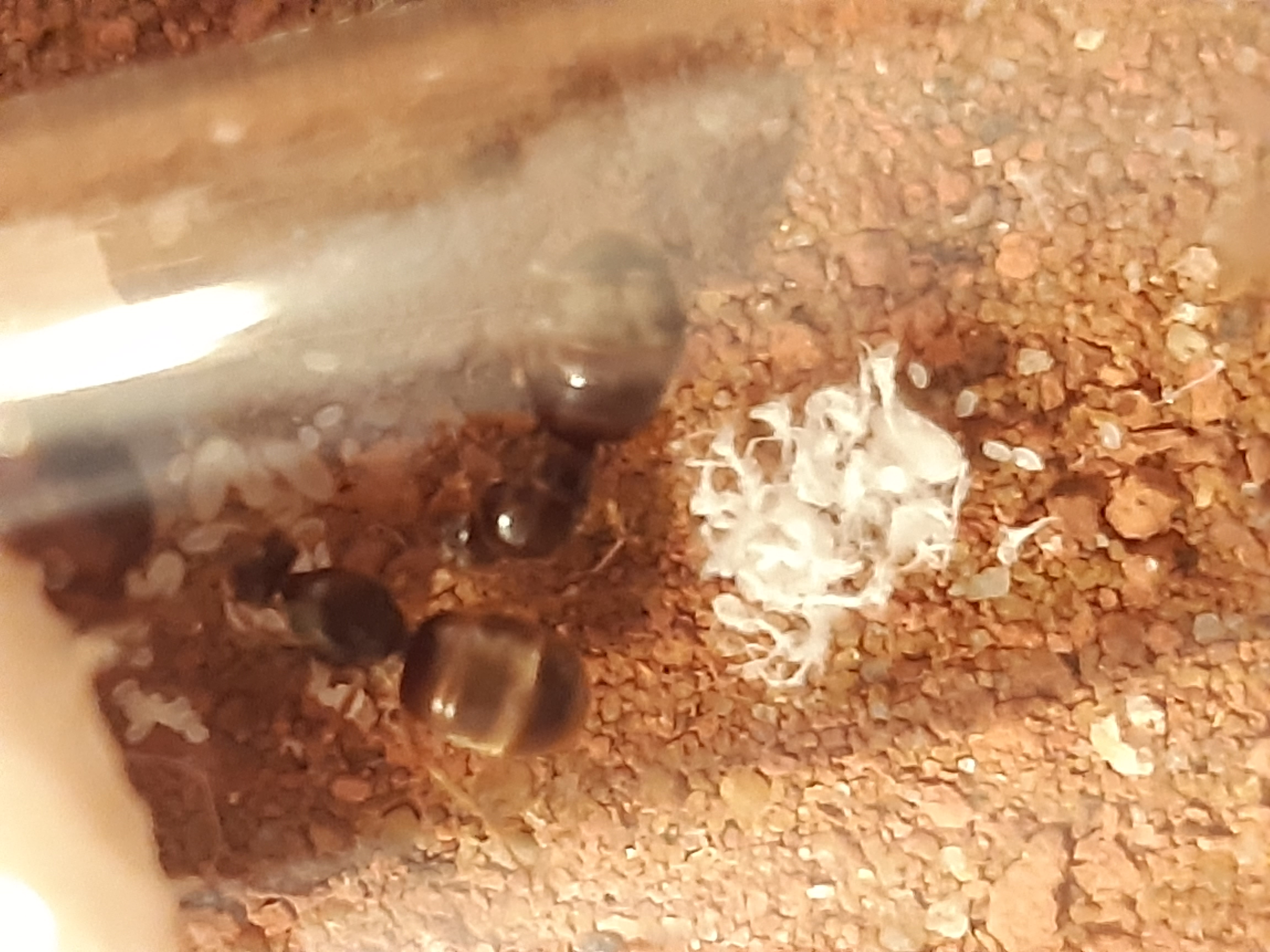 Meine lasius flavus Königinnen haben vor ein paar Wochen Eier gelegt und ich habe sie schonmalnin ein Formicarium getan. Heute sehe ich die Eier und finde sie sehen komisch aus! Bitte hilfe.