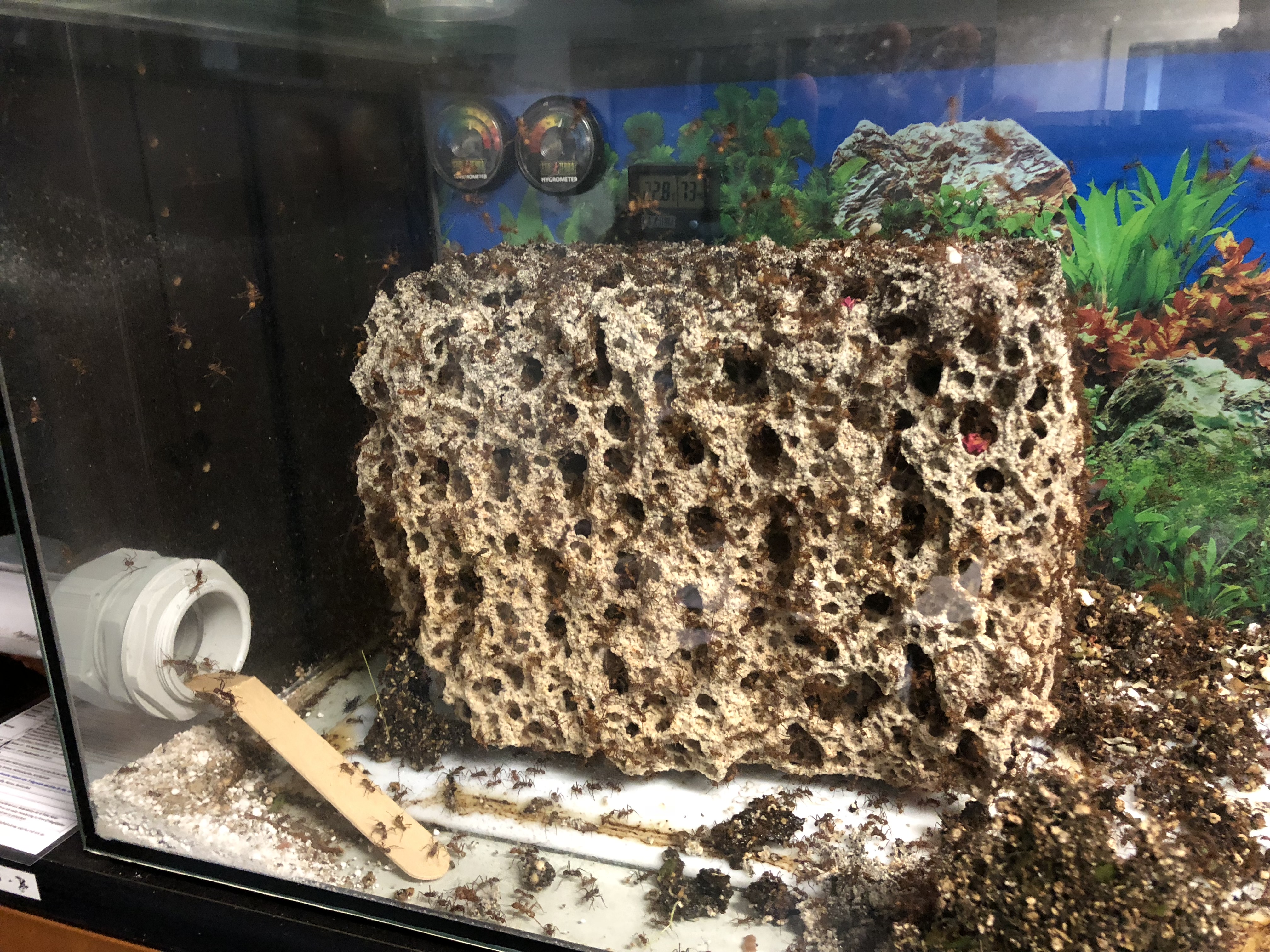 Was Ich auch beobachten konnte ist das sie den eingeschnittenen Eingang komplett zubauten und sich stattdessen unter der Haube hergegraben haben und einige CM vom Nest entfernt ein kleiner HĂŒgel entstanden ist aus dem sie rauskommen.