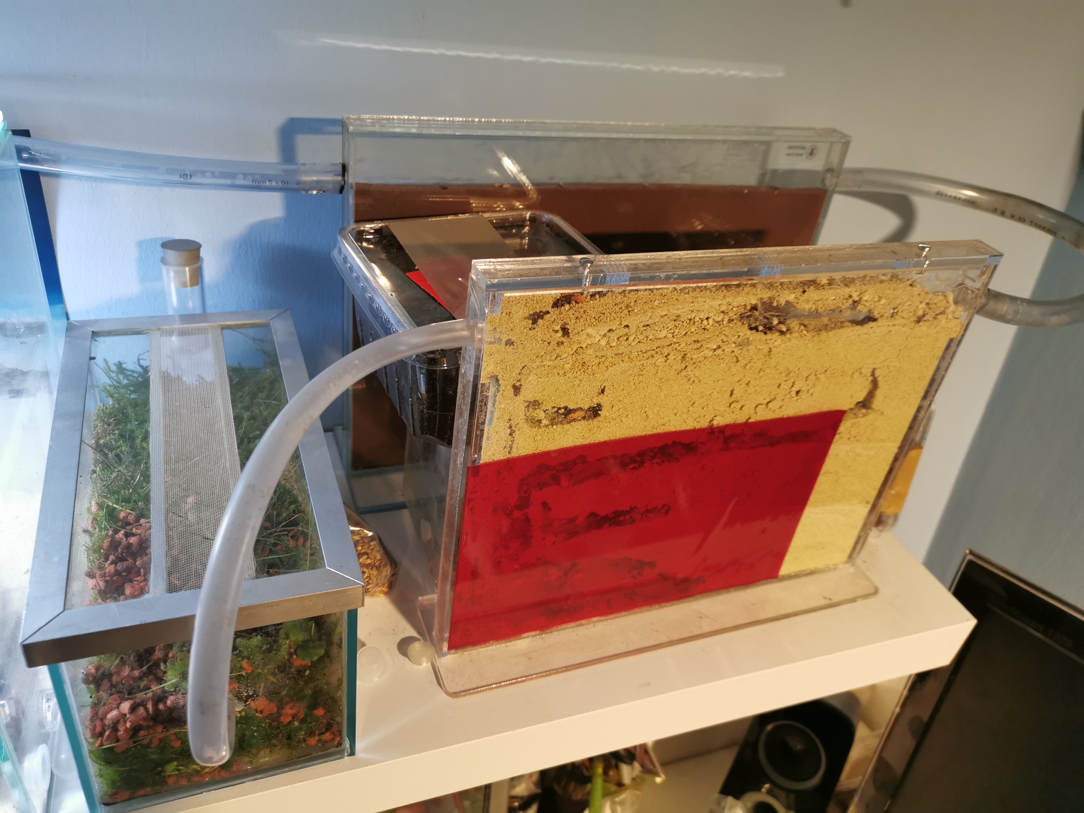 Wie man sieht hab ich neben der groĂźen Arena die kleine mit seramis und Moos samt erdboden befĂĽllt.