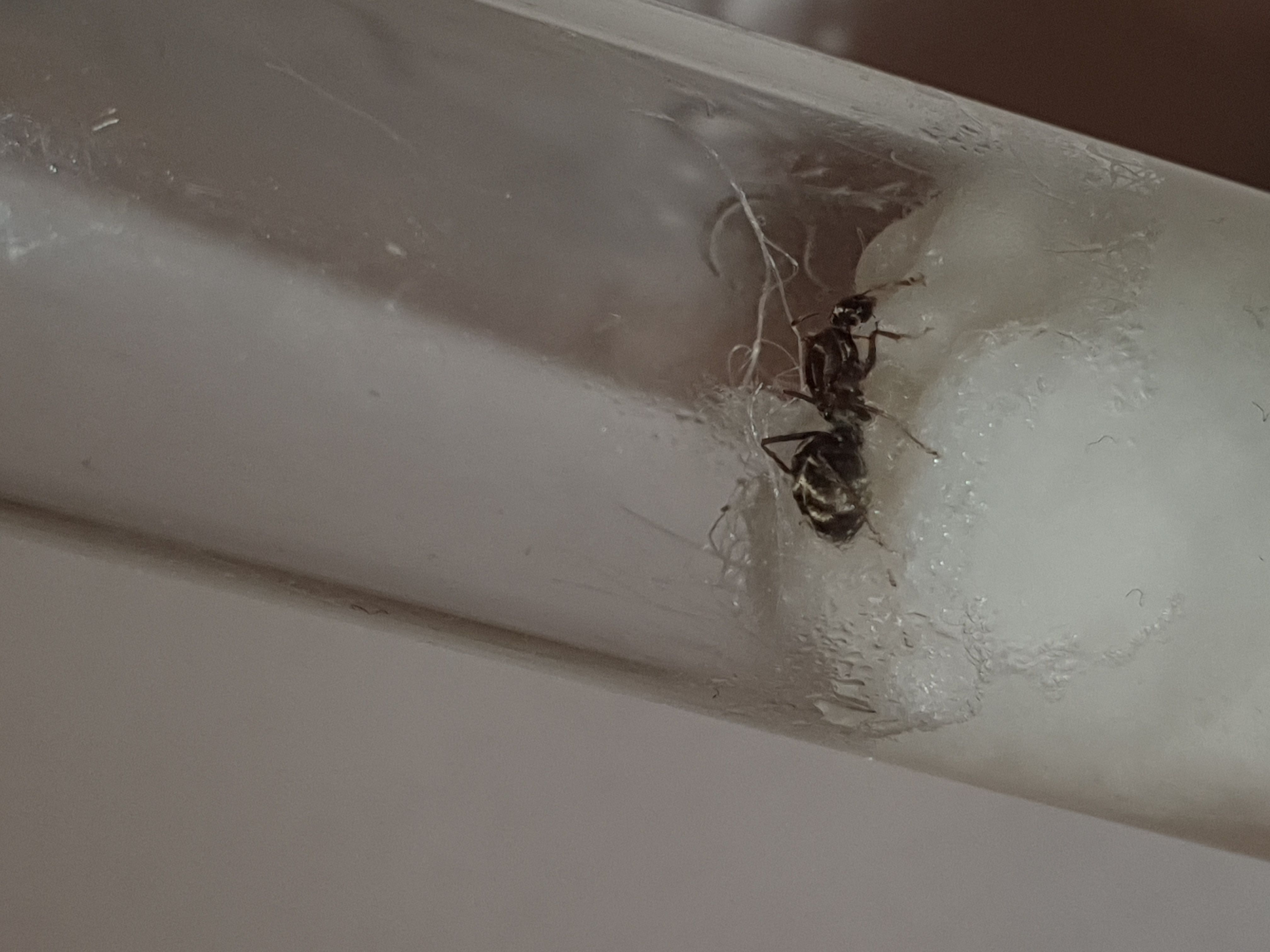 Sie ist ca. 0,7cm-1cm groß, schwarz und hat sie auf dem