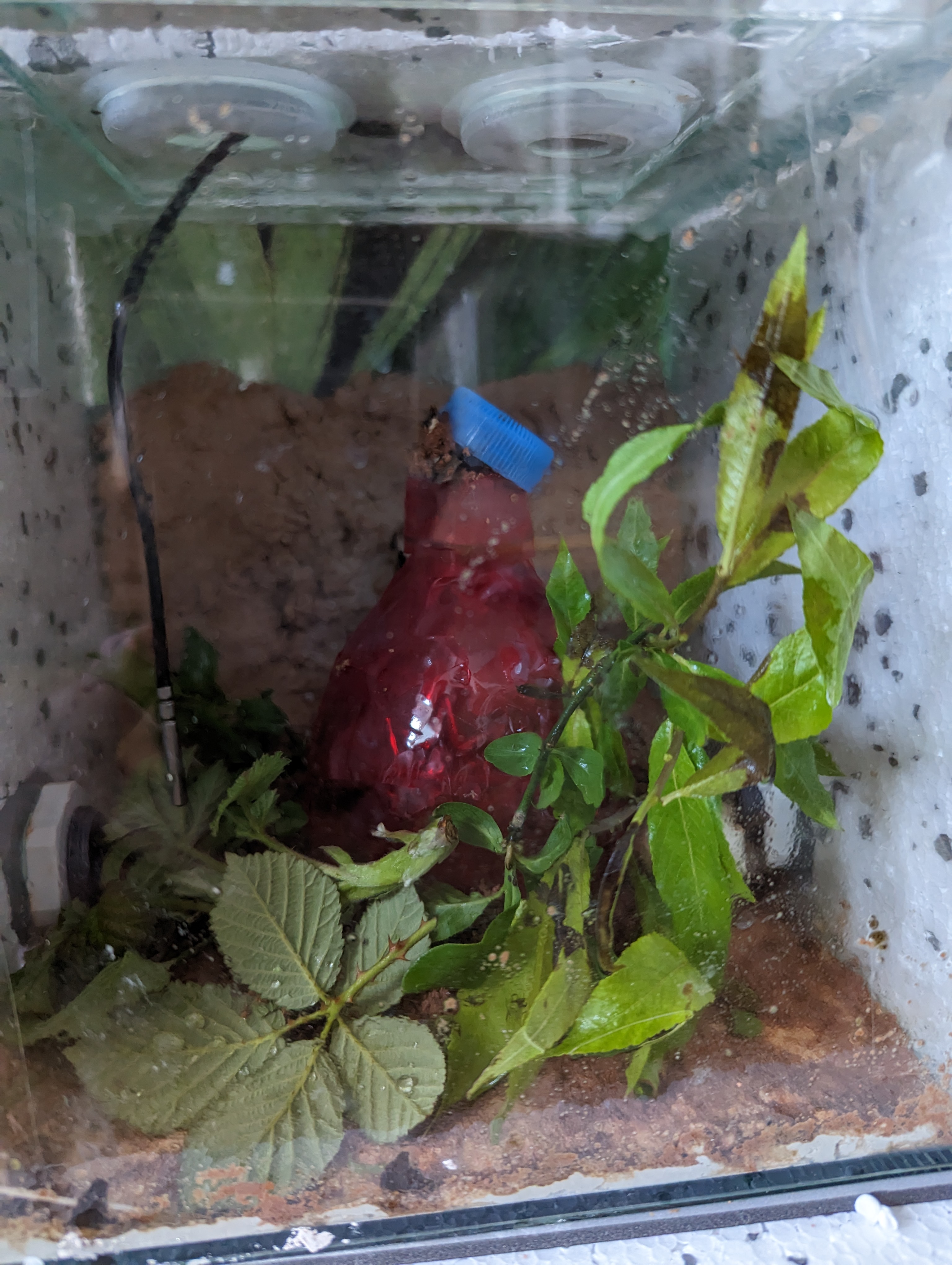 Meine Kolonie aus Januar/Februar hat jetzt etwas über ein Liter Pilz und der steht im 30x30 Becken ohne Probleme und ohne Haube, dafür ist es bei mir aber nicht ansatzweise so Feucht wie bei dir, und auch 2-3 Grad kühler.