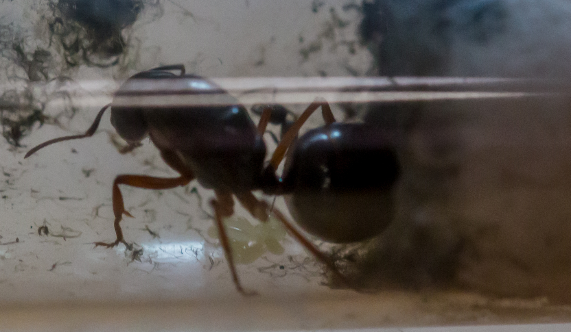 Habe einen Fehler gemacht und die Tiere im Nest total aufgeschreckt. Alle 5 waren richtig panisch. Eine Arbeiterin ist tot (von der