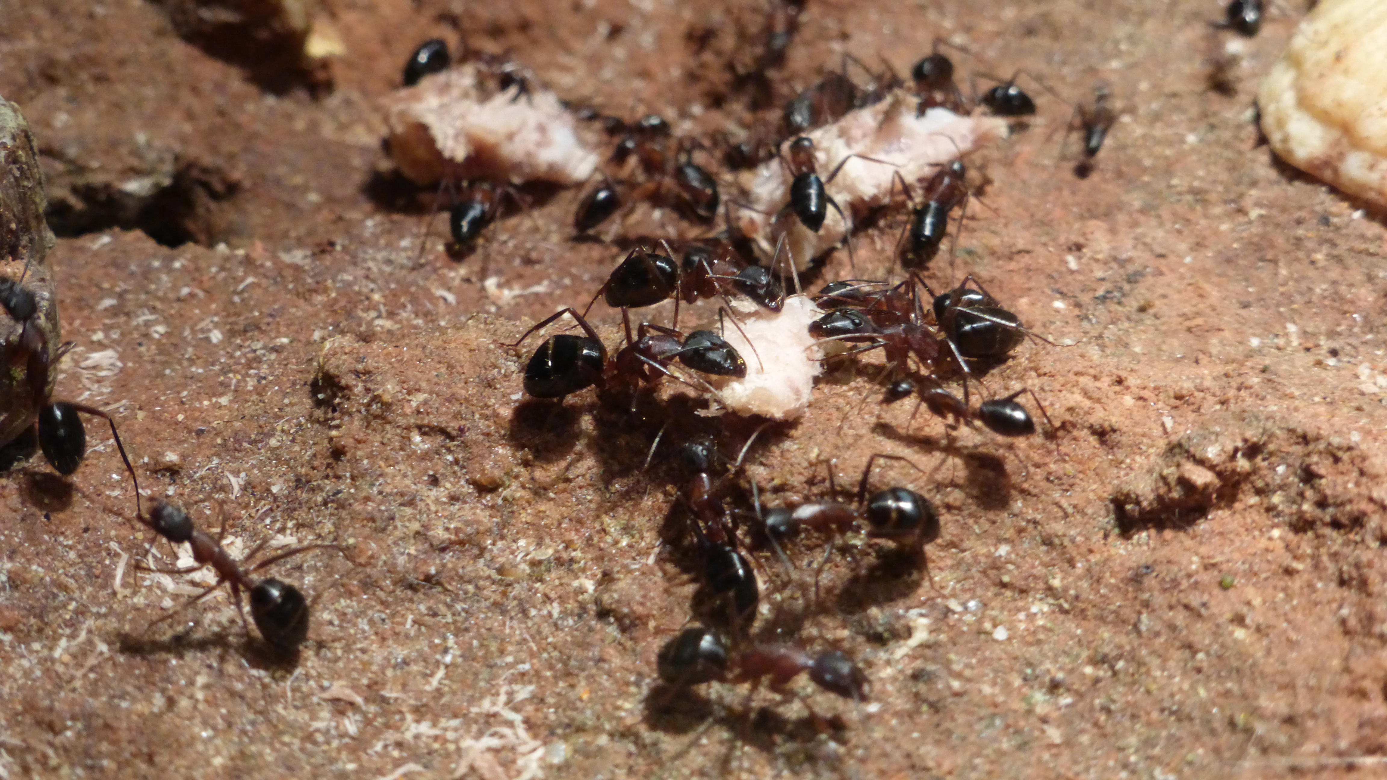 Larven sind zwar noch im Wintermodus, aber die Arbeiterinnen verwerten eine Maus jetzt innerhalb von 2-3 Tagen.