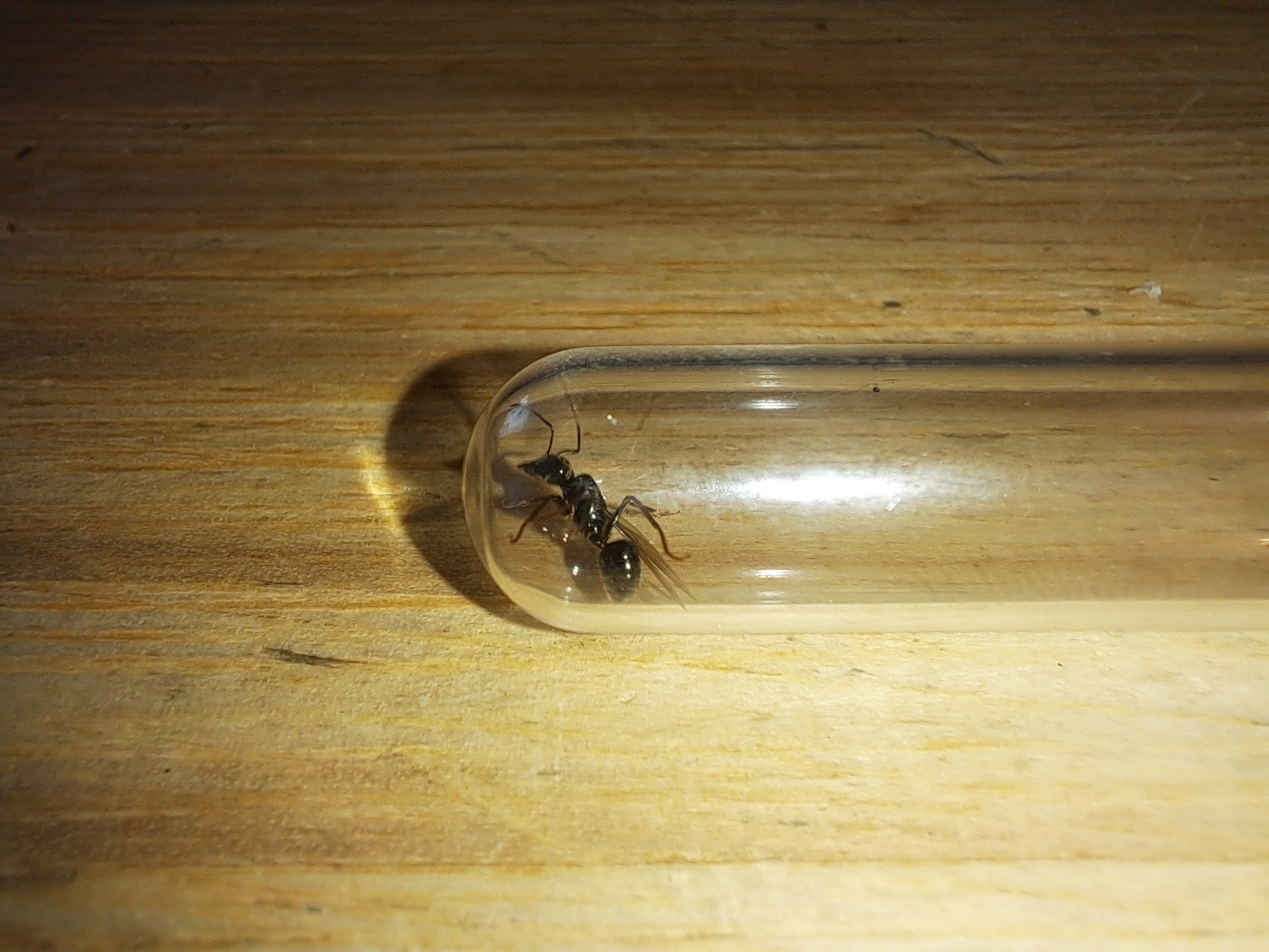 War nur für Bilder gefangen, da sie noch Flügel hatte ist sie ja sehr wahrscheinlich noch unbegattet. Leider, die Art scheint interessante Nester zu bauen, auch wenn sie sozialparasitär gründet, aber im Garten hätte ich genügend Lasius sp . Nester gehabt um eine Gründung zu versuchen.