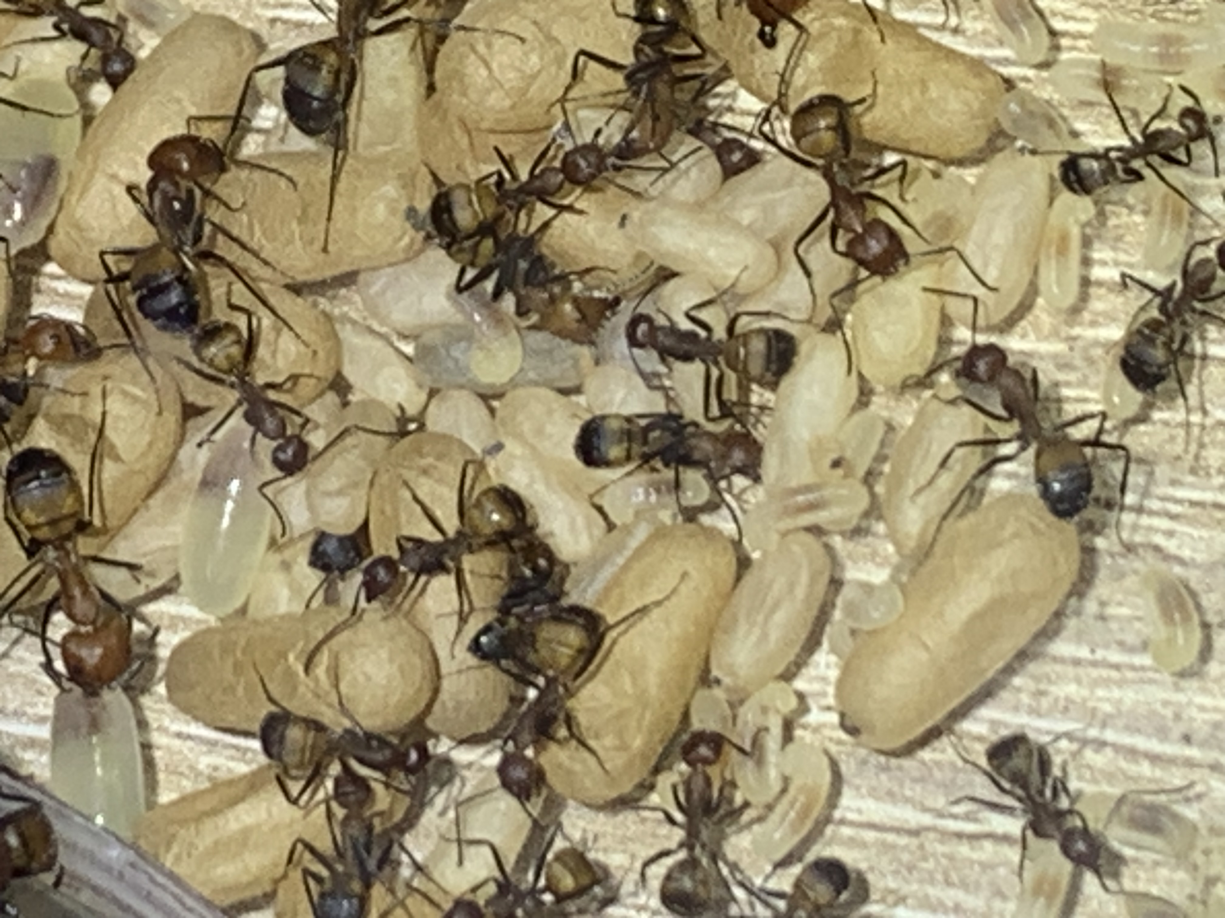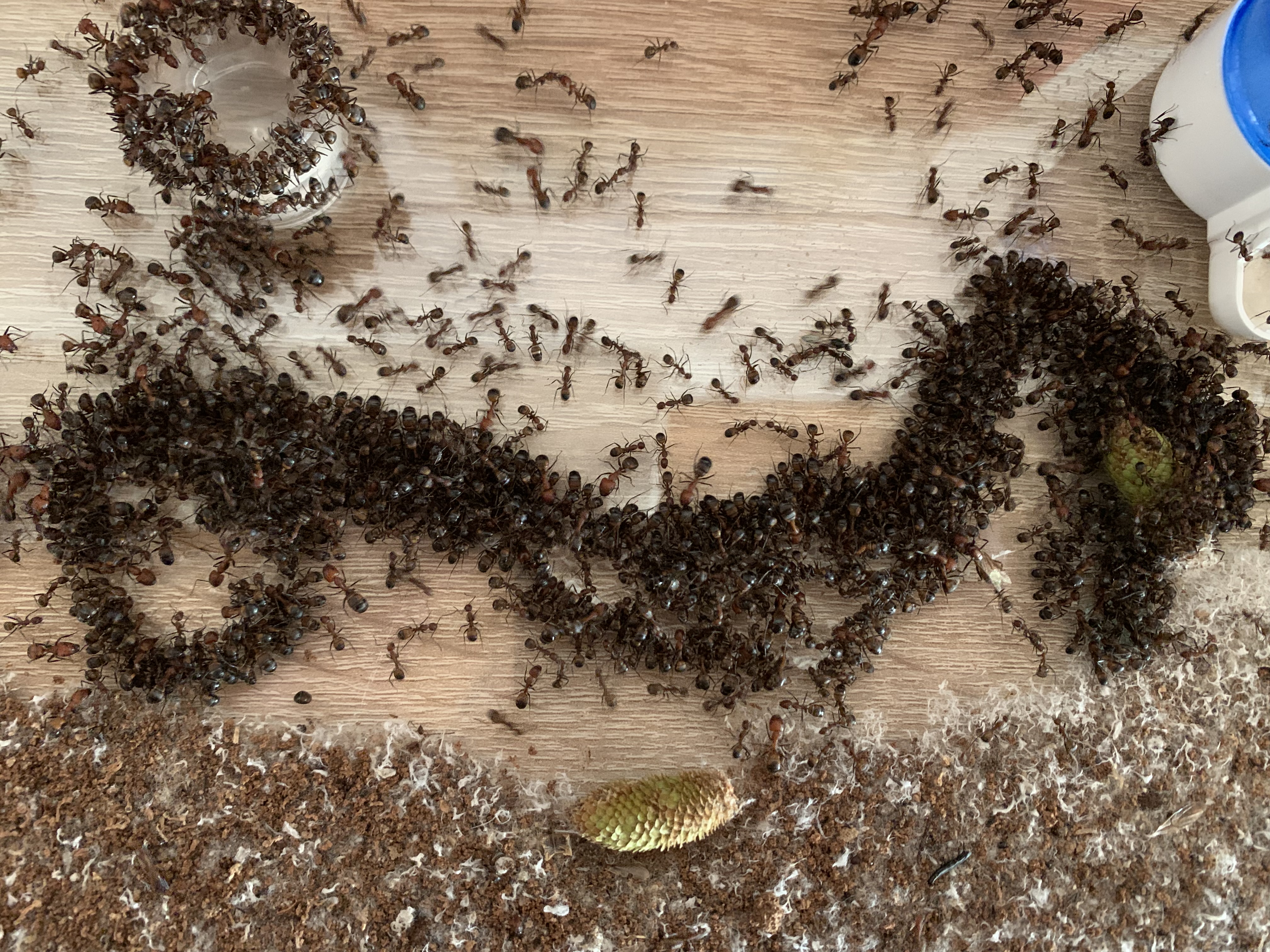 Was ich schade finde ist, dass sie wieder mit der Aufzucht von Jungköniginnen beginnen. Einerseits ist es ja schön, dass heißt, das man nix falsch gemacht hat, anderseits sind Jungköniginnen (in dieser Menge) bei der Ameisenhaltung nutzlos und benötigen nur Resourcen.