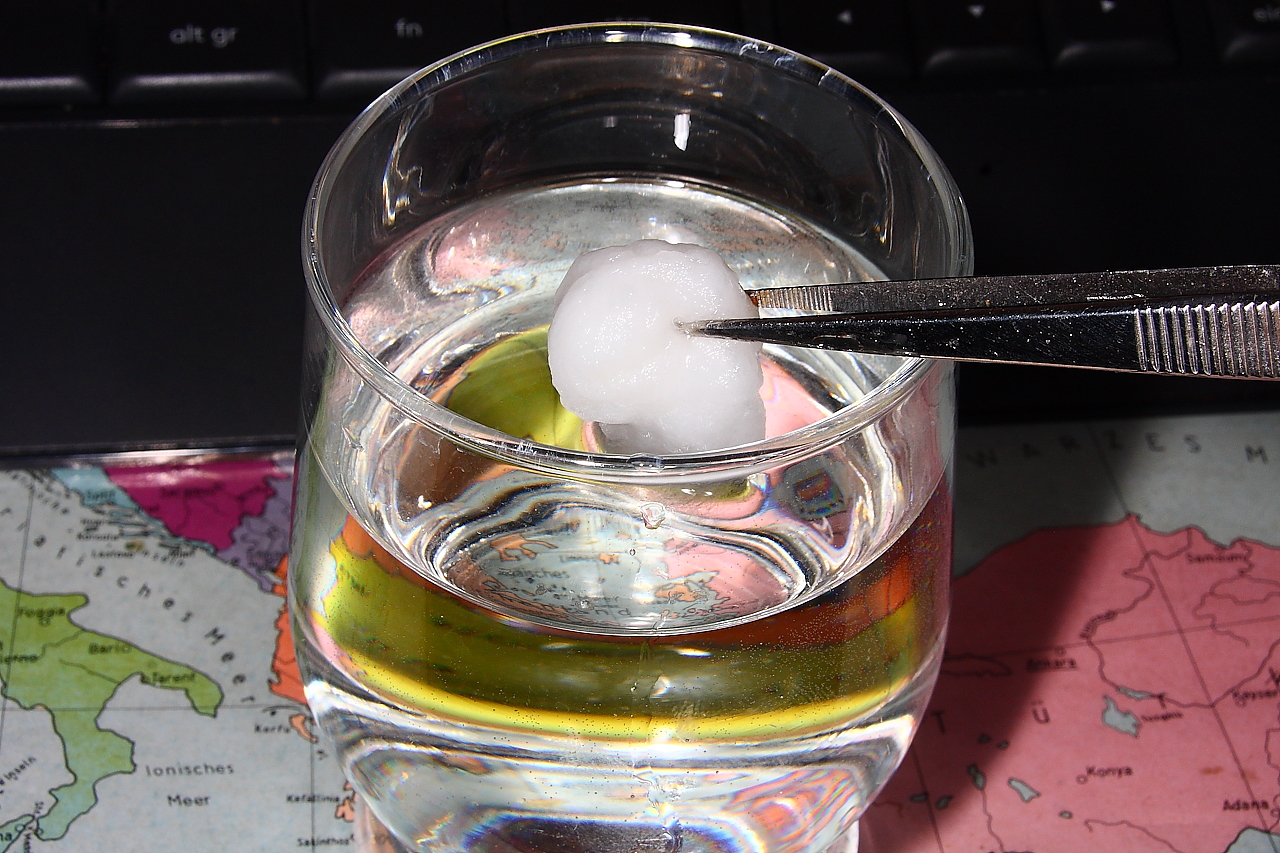 Jetzt liegt ihr Reagenzglas in einem Becken mit 40x 40x30 cm.