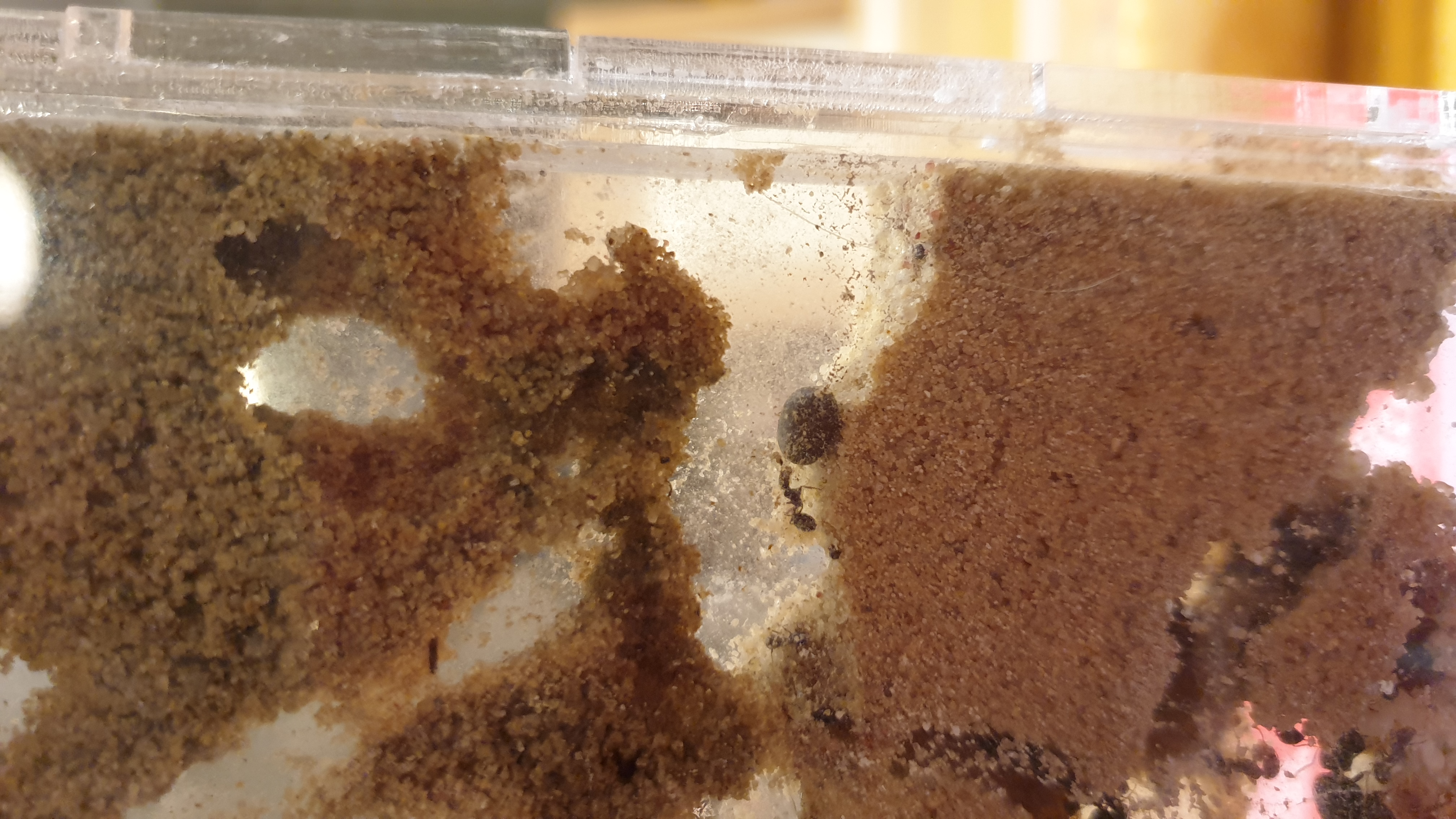 Hallo, ich habe auch plötzlich eine schwarze Kugel in meiner Ameisenfarm. Da ich die einzige bin die sie füttert, weiss ich, das ich sowas nie reingegeben habe. Gestern habe ich sie noch nicht gesehen, heute liegt sie da..mitten in einem Gang. Von oben kann sie gar nicht kommen, weil der Eingang viel zu eng wäre. Ca. 4mm Durchmesser.