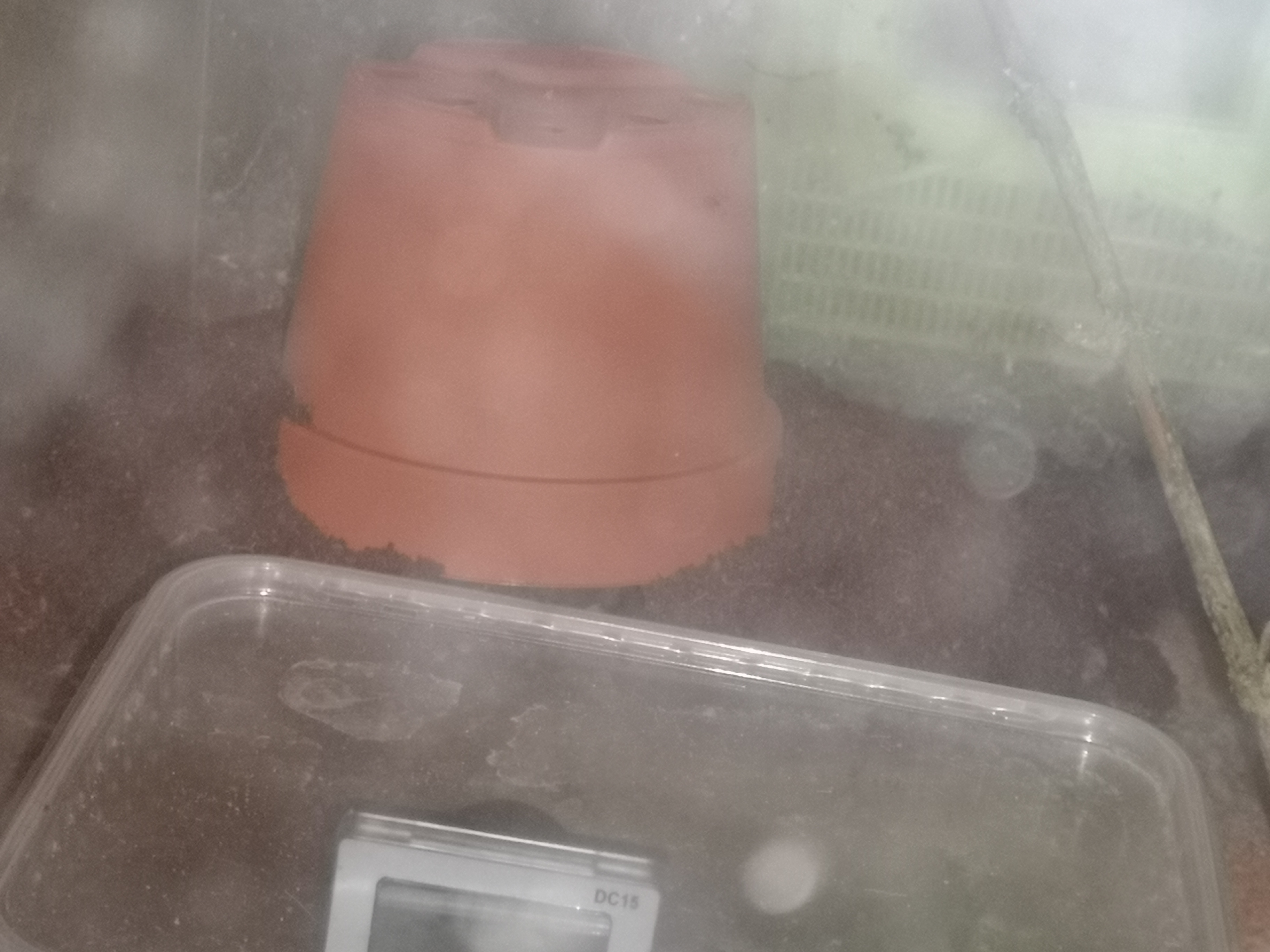 Da die komplette Plastikbox voll ist habe ich nun entschieden noch einen etwas größeren Blumentopf anzubieten unter dem die Kolonie einen größeren Pilz bauen kann.