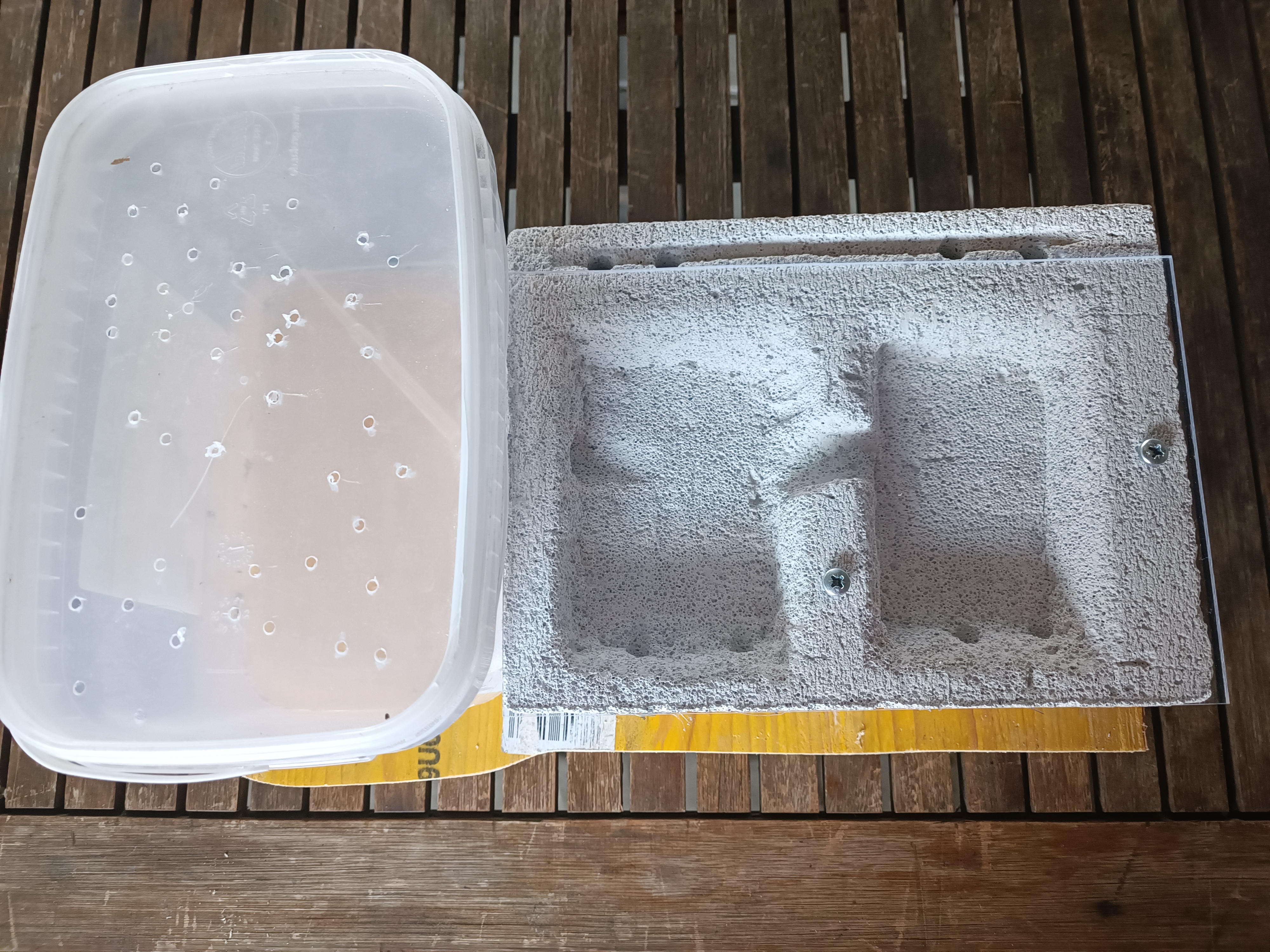 Ich werde aber zuerst den Durchgang zur zweiten Kammer verschlieĂźen. Heizmatten werde ich noch anbringen seitlich an der Arena und unter das Ytongnest (Bei Tipps bitte einfach schreiben