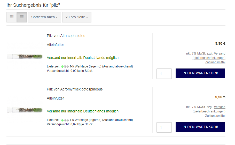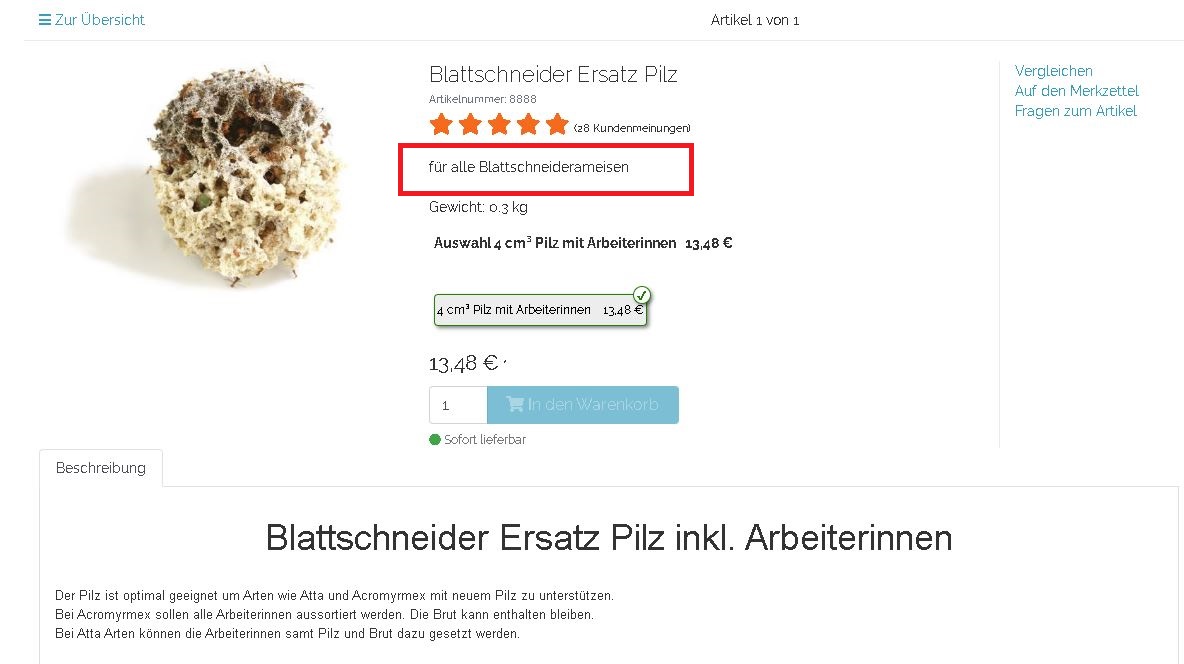 Hier ein aktuelles Gegenbeispiel eines bekannten Ameisenshops: